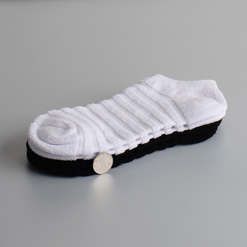 5双毛巾袜子隐形男士加厚短低帮运动纯棉篮球袜潮黑白袜控男中筒