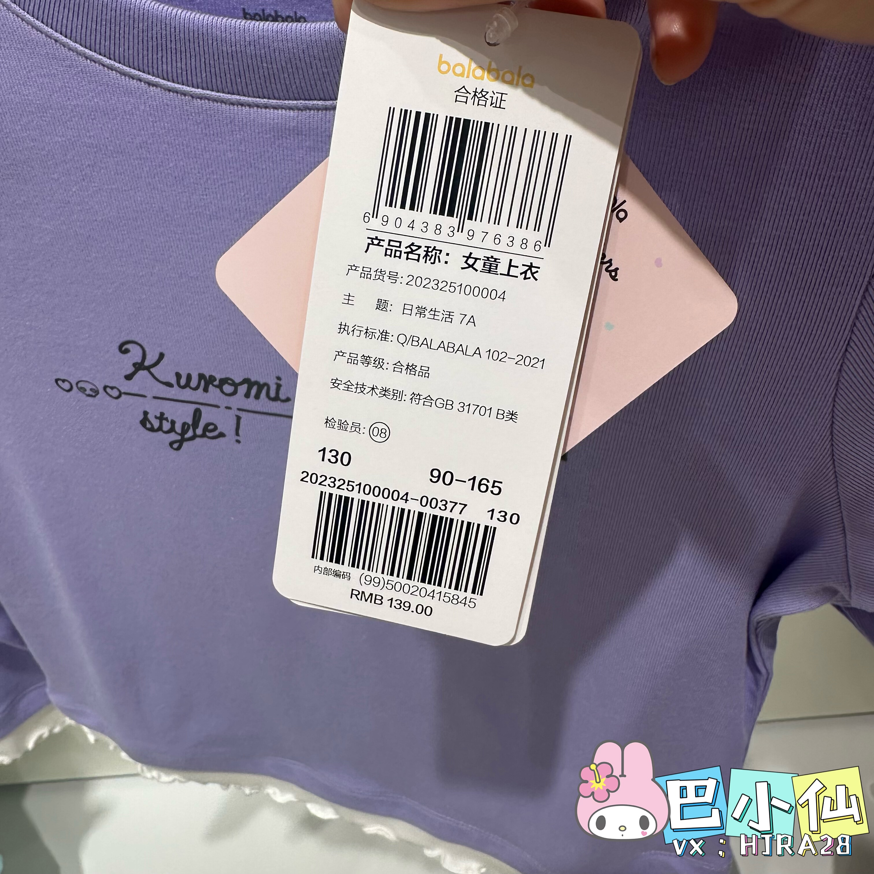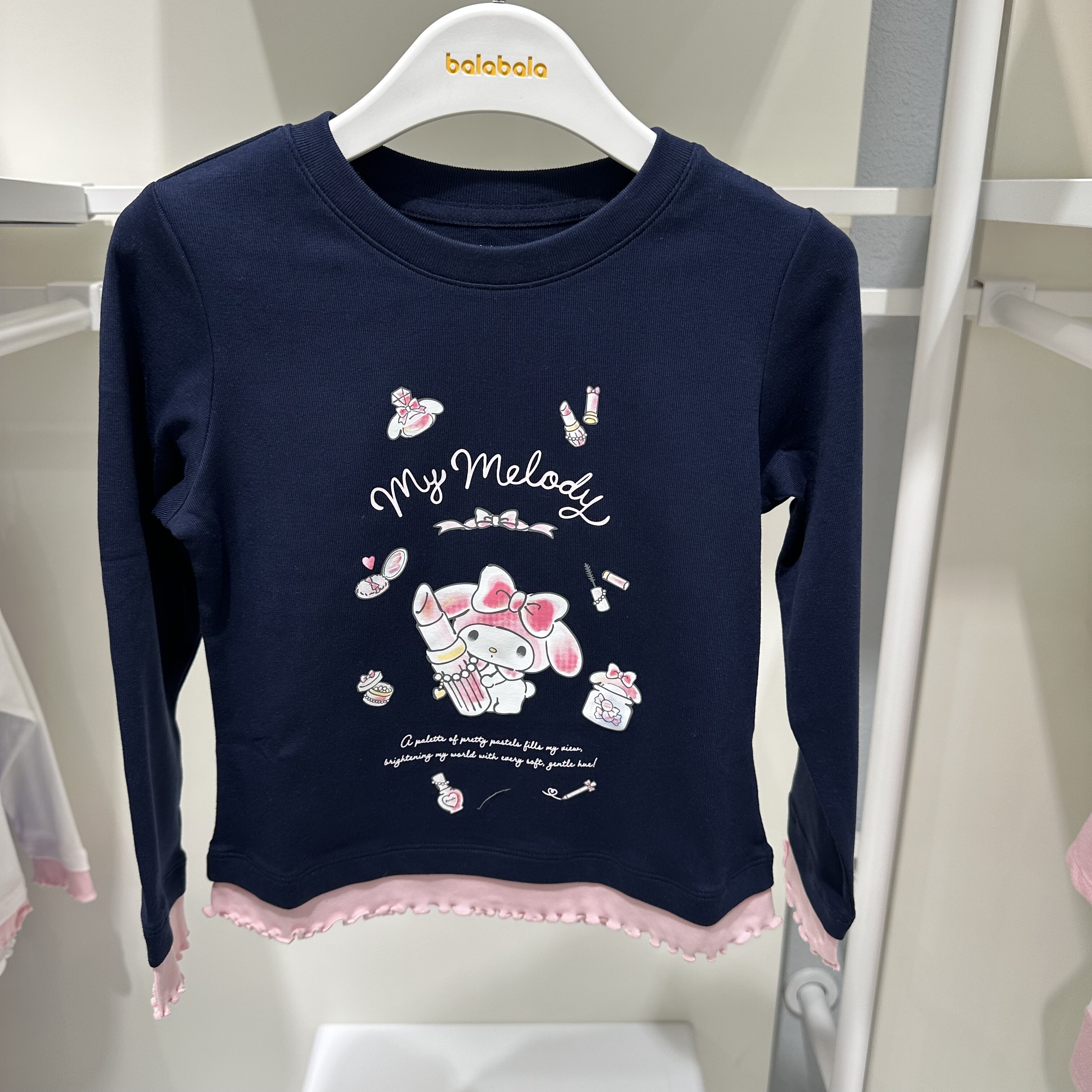 巴拉巴拉女童打底衫秋季舒适柔软三丽鸥IP款长袖T恤202325100004