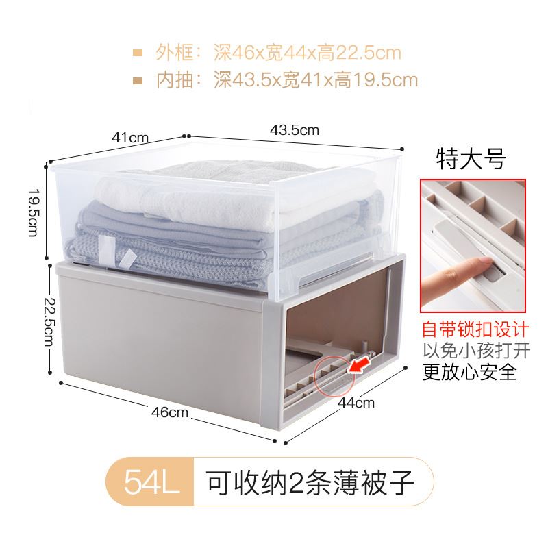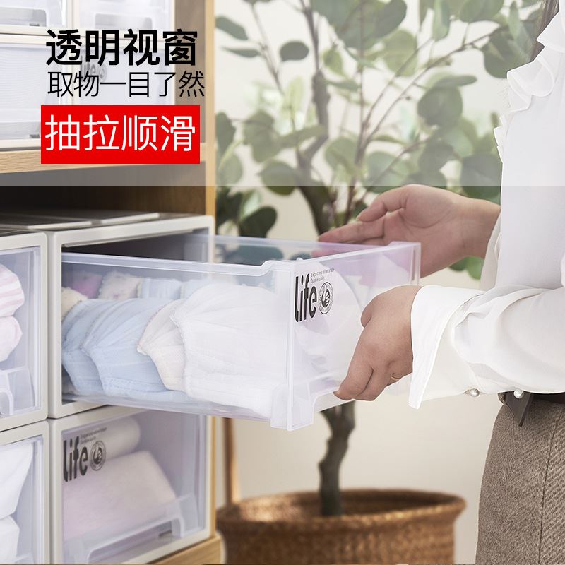 装衣服收纳箱抽屉式塑料透明家用储物衣柜子收纳盒内衣整理箱