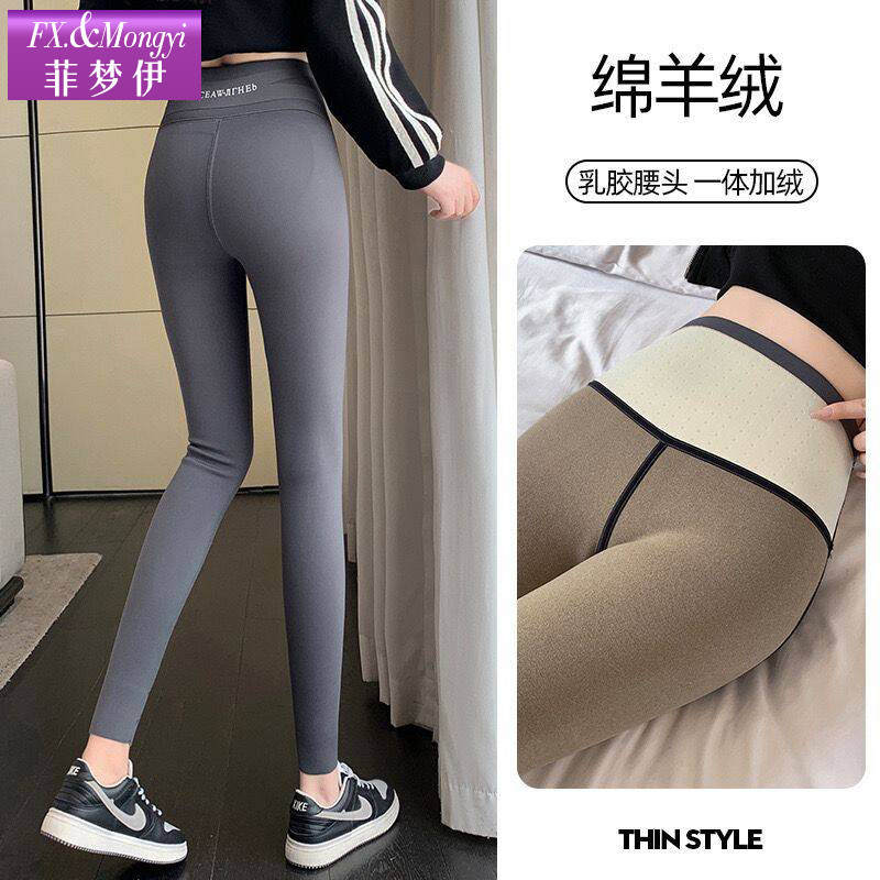 菲梦伊鲨鱼裤女外穿秋季新款加绒舒适收腹提臀黑色瑜伽裤打底裤子
