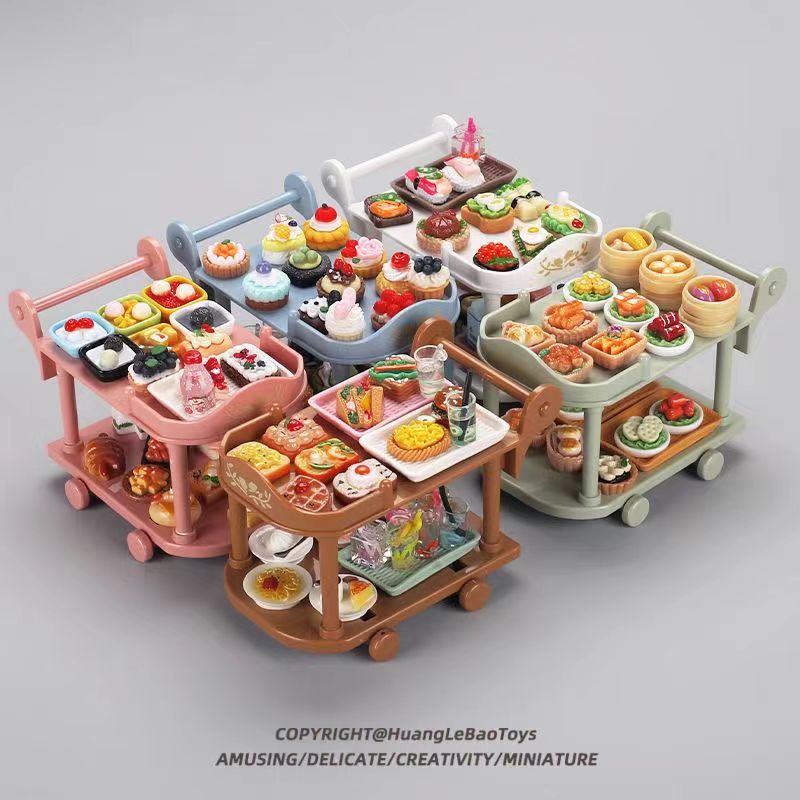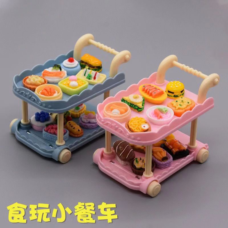 dollhouse 娃娃屋 迷你餐车手推车 食玩模型超市bo11过家家玩具