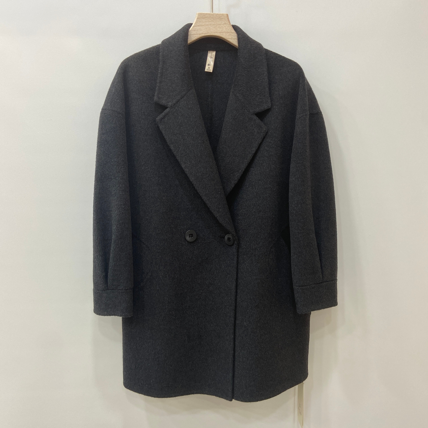 879高端品牌双面羊绒大衣女士秋冬装西装领中长款羊绒毛呢外套厚