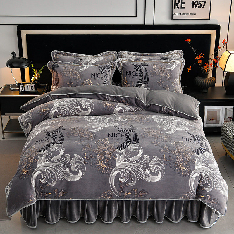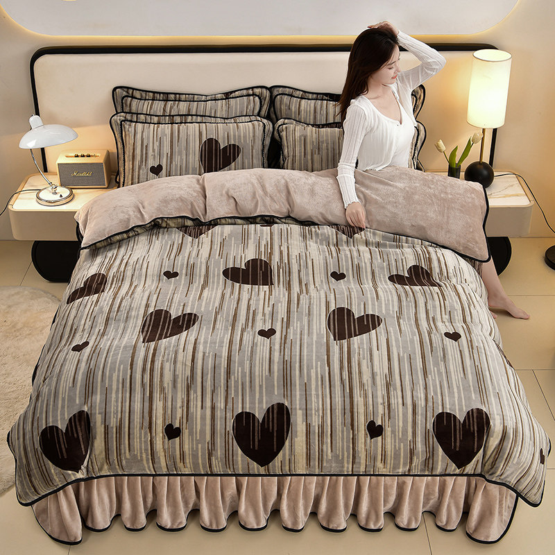 2025牛奶绒四件套冬季加厚保暖珊瑚绒被套床上用品法兰绒床单裙式