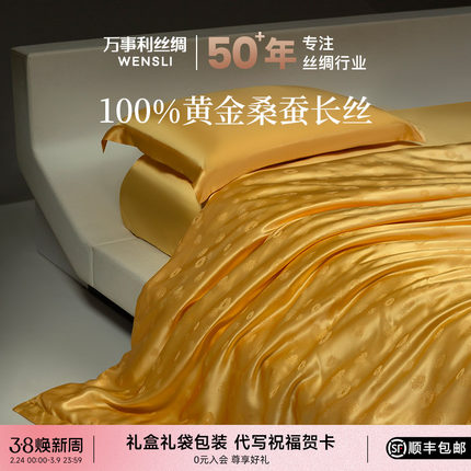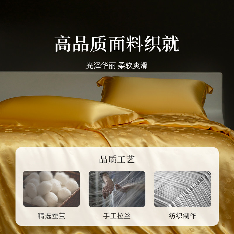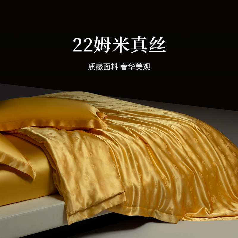 万事利100%桑蚕丝被床单被套真丝提花五件套-金蚕1号黄金被套装