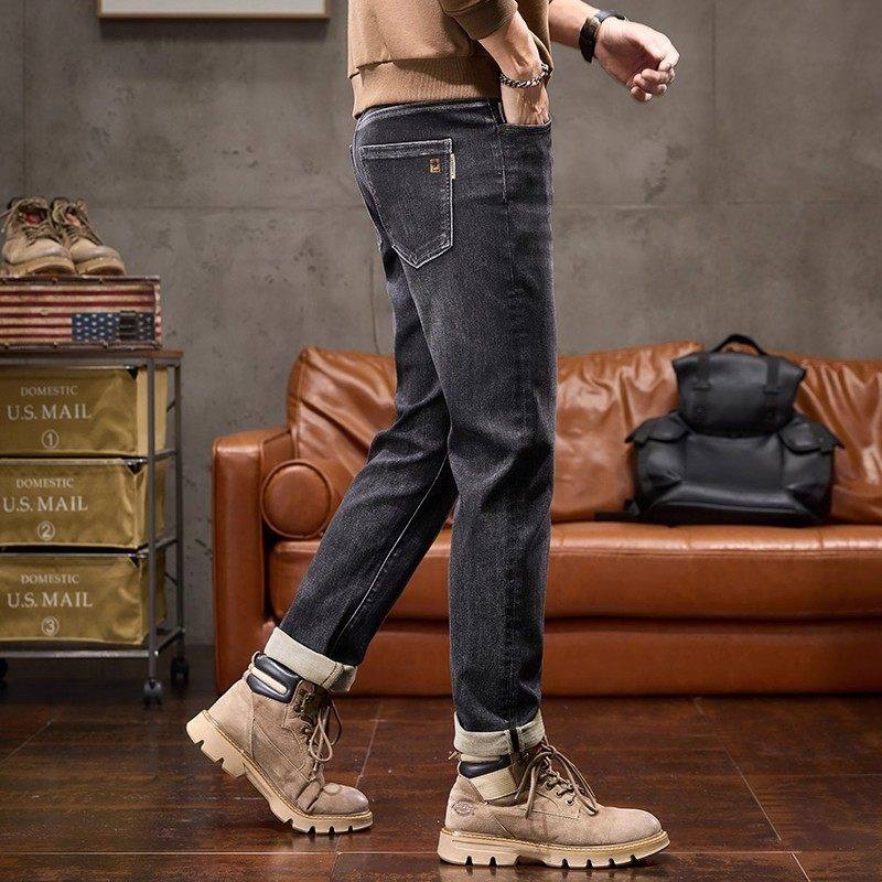 Yishion以纯官方时尚正品加绒牛仔裤男士秋冬款加厚保暖直筒宽松