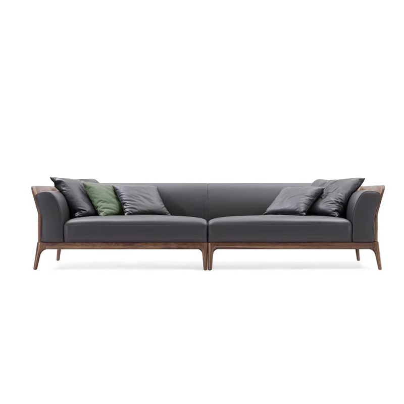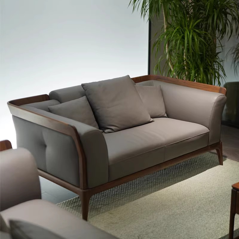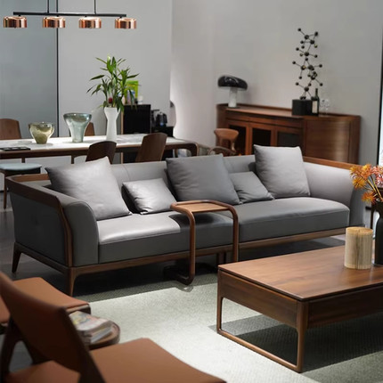 新中式胡桃木真皮小户型实木沙发