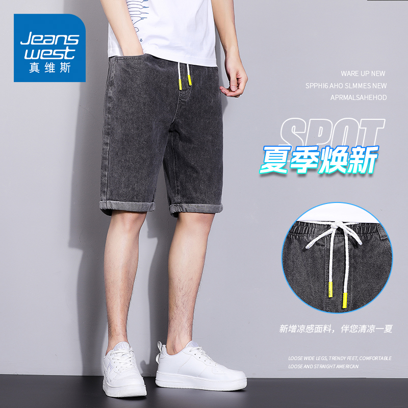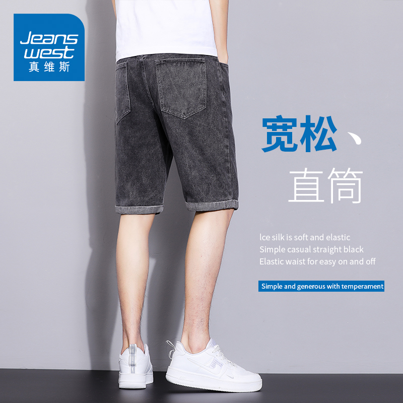 KZH真维斯牛仔短裤男夏季薄款宽松直筒中裤潮流舒适休闲五分裤热