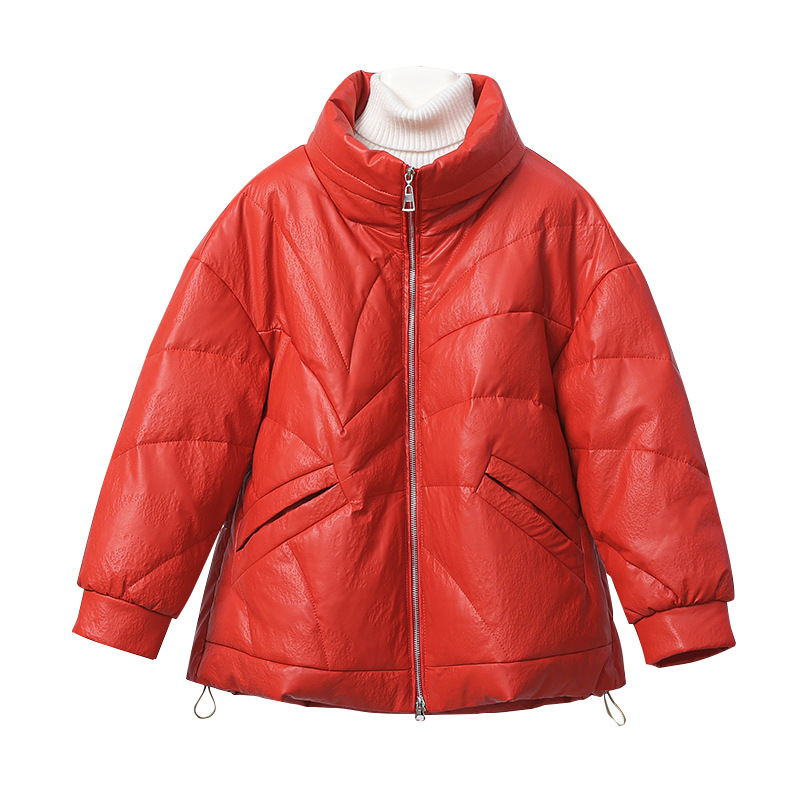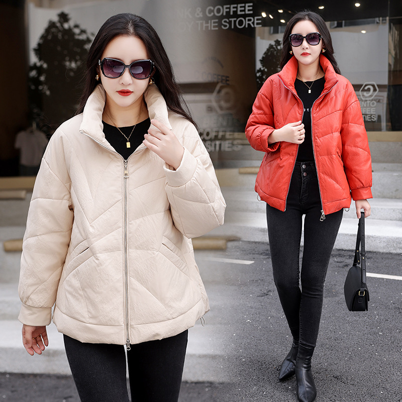 大码女绵羊皮真皮皮衣羽绒服女式短款加厚羽绒外套显瘦立领羽绒服