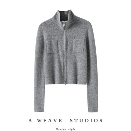 气质姐姐感!高领100%纯山羊绒开衫女纯羊绒毛衣针织拉链开衫秋冬