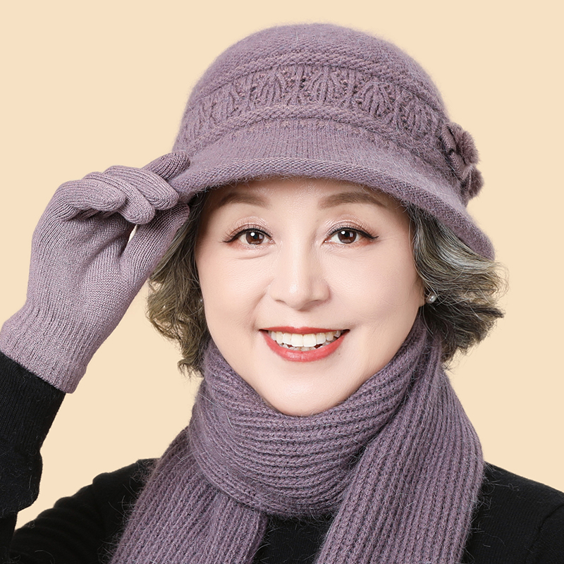 妈妈帽子女冬季兔毛盆帽保暖中老年人老太太毛线帽奶奶老人渔夫帽