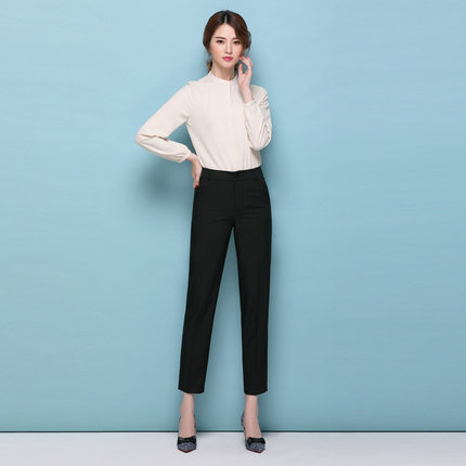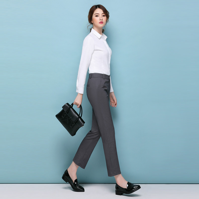 黑色高腰显瘦吸烟宽松职业工作直筒灰色烟管上班九分西装裤女春秋