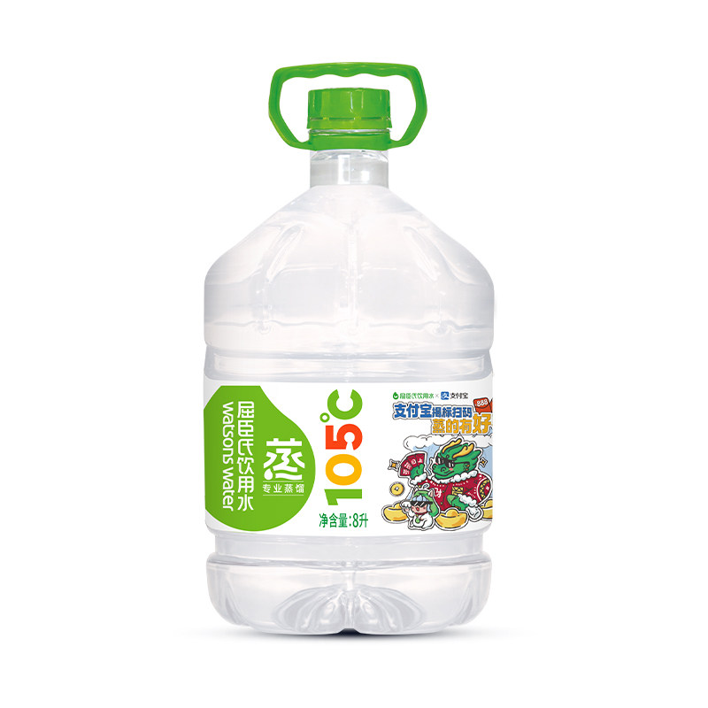 屈臣氏饮用水蒸馏8L*6桶整箱装家庭桶装敷脸护肤泡茶泡奶非矿泉水