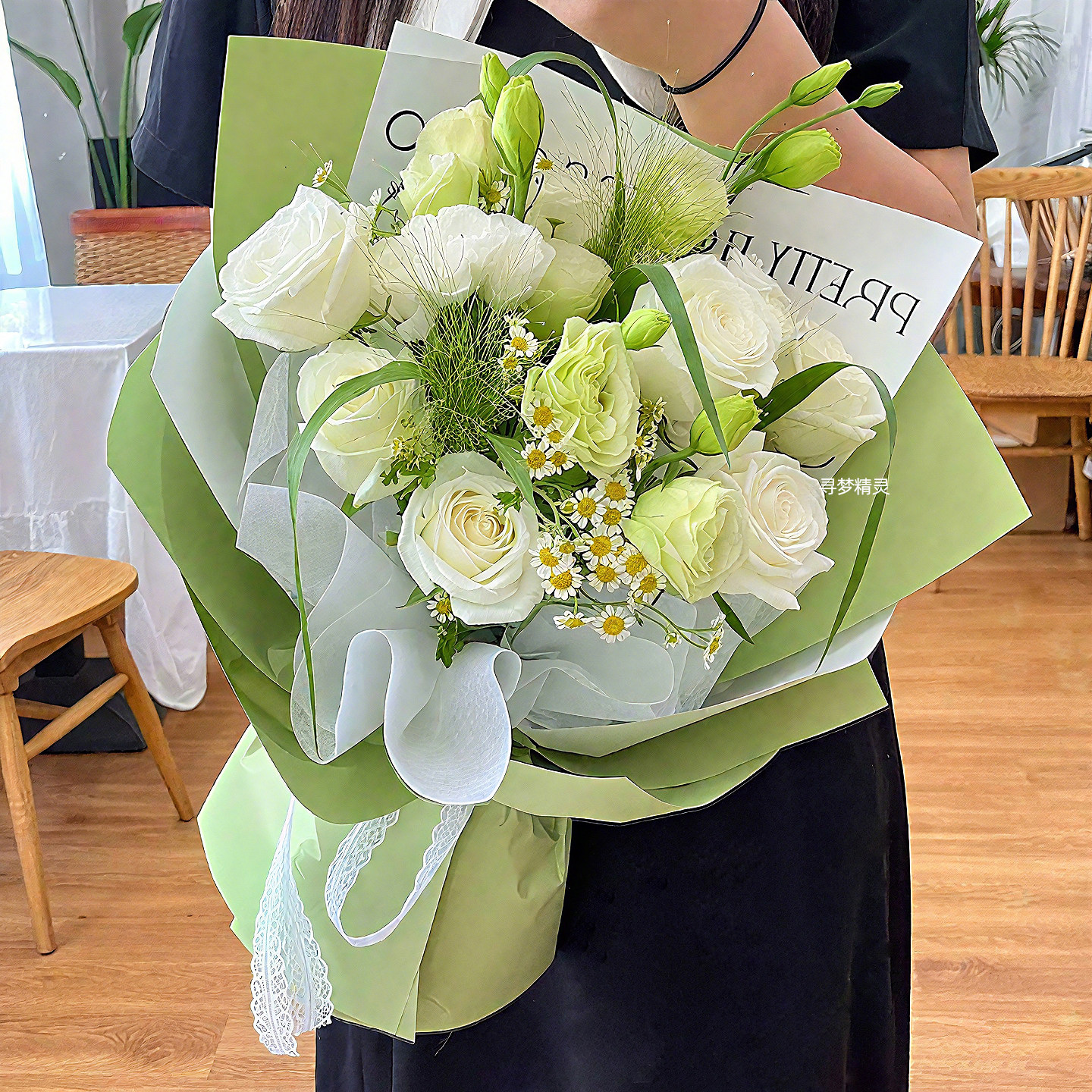 白玫瑰洋桔梗花束同城速递礼物