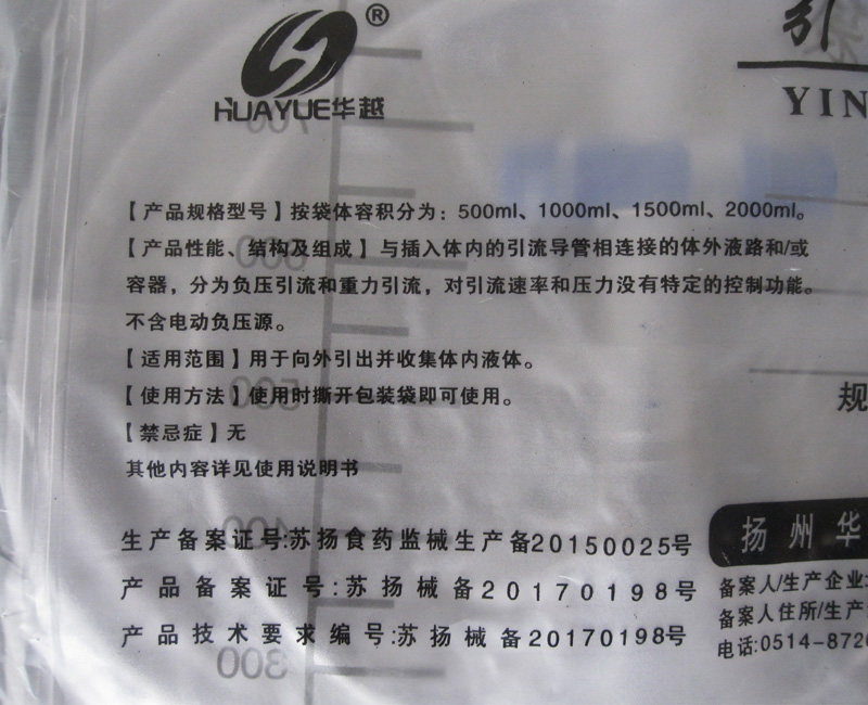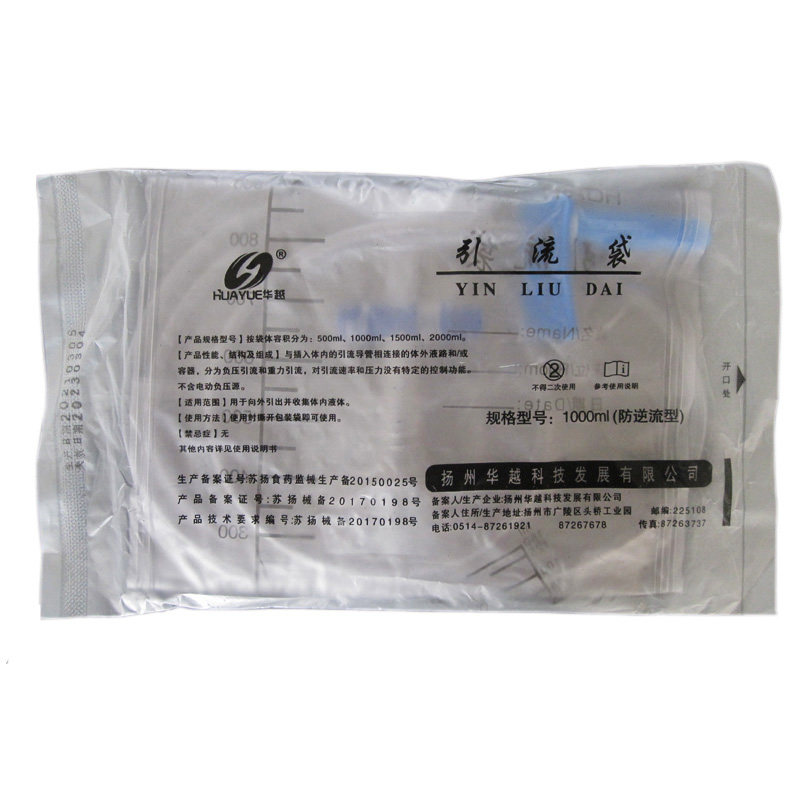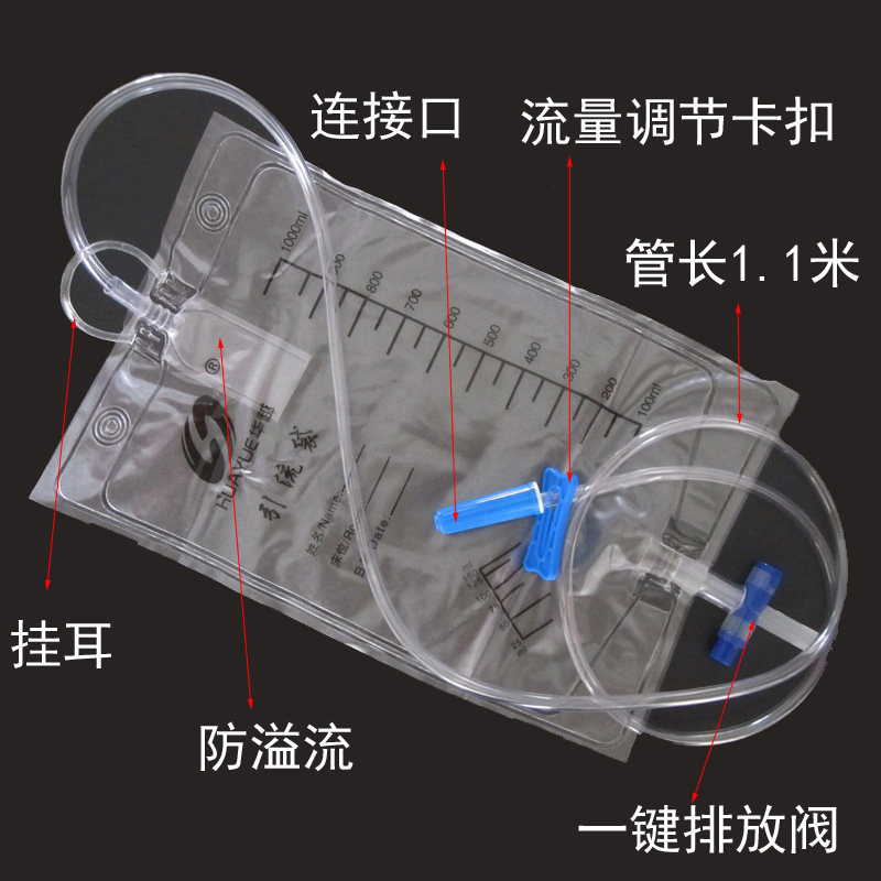 华越一次性引流袋尿袋导尿十字阀防逆流1000ml管长1.1m医用集尿袋