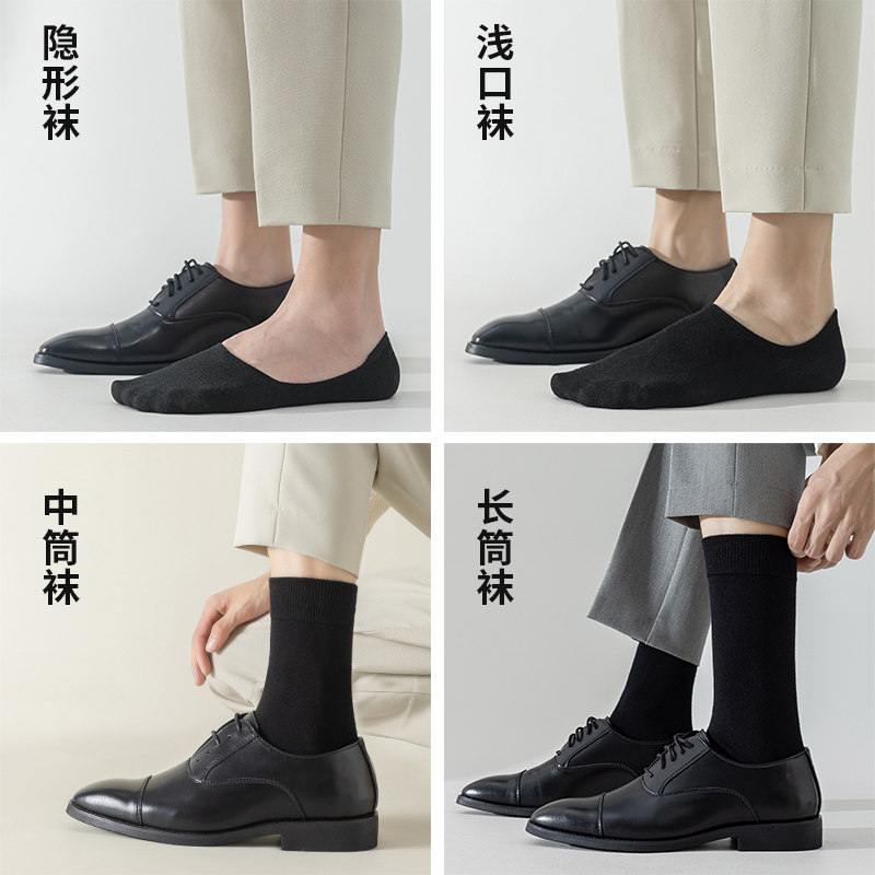 拍婚纱照船袜男士夏薄款正装皮鞋袜子纯棉防臭吸汗西装黑白色短袜