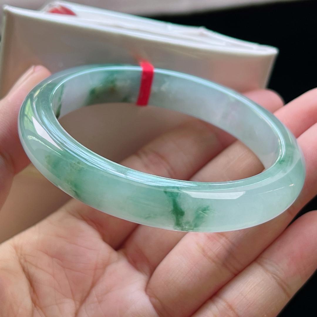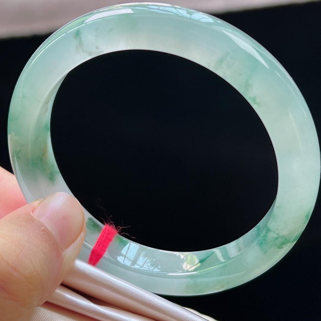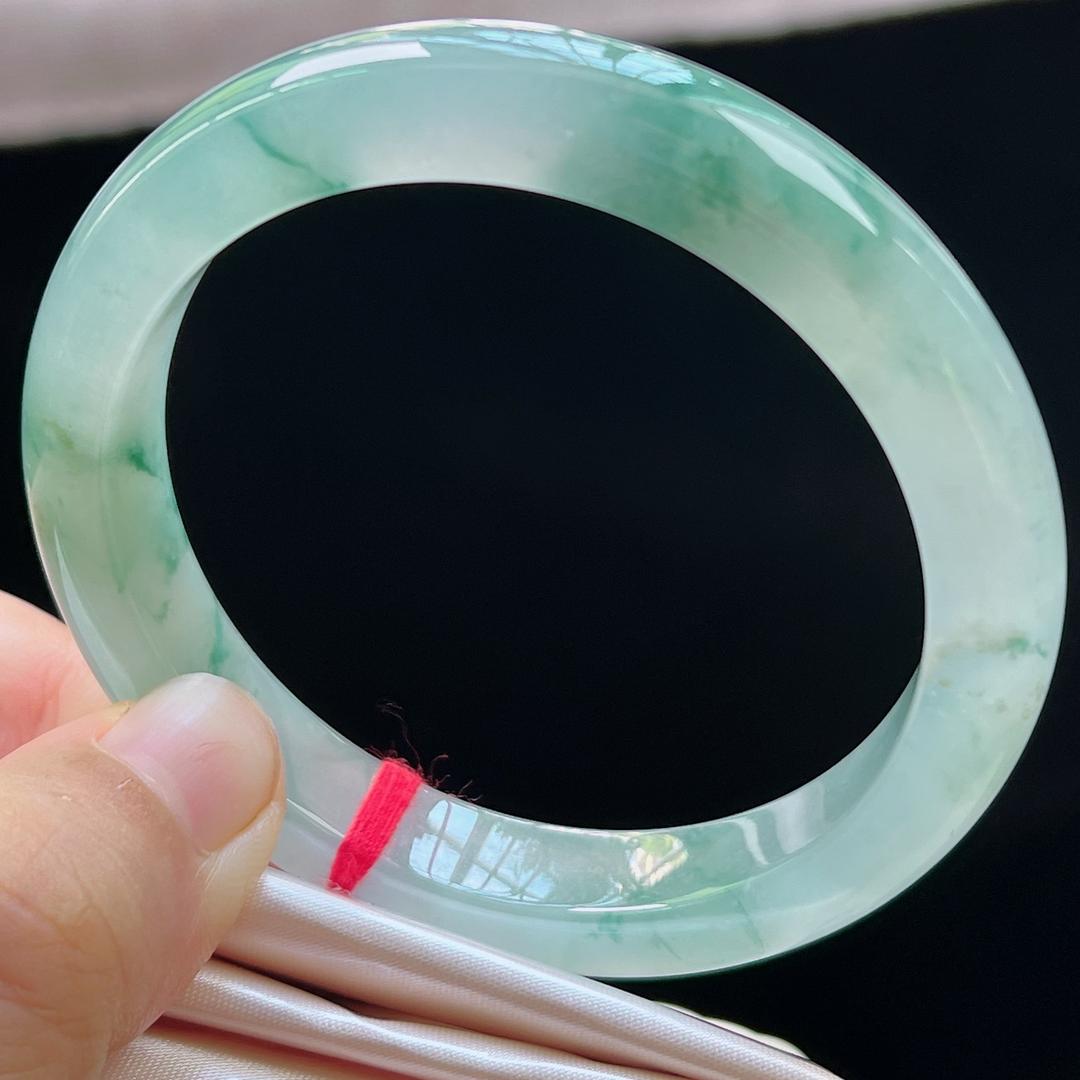 缅甸翡翠玉手镯平安镯正圈57圈口天然玉石A货冰种飘花证书0922