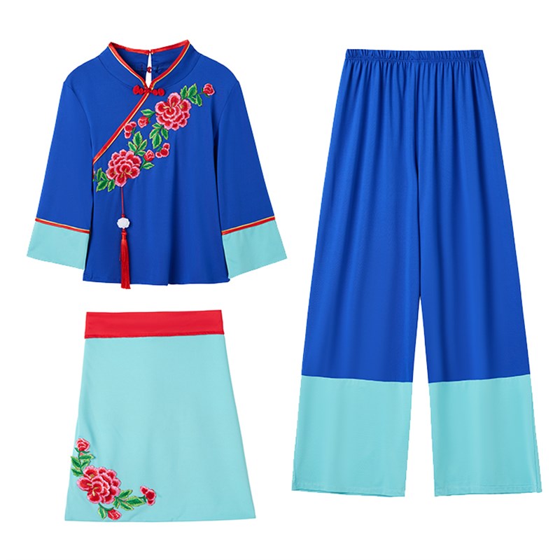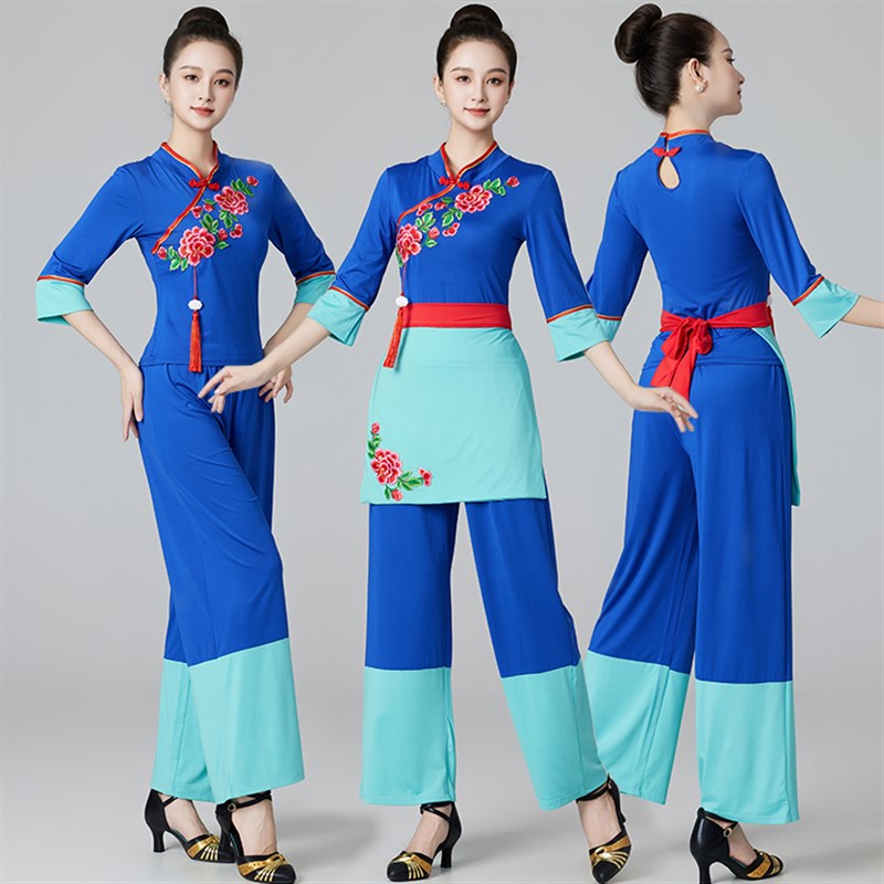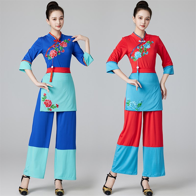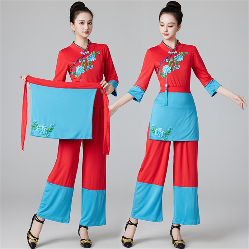 民族舞蹈服装新款秧歌打鼓舞衣服喜庆村姑采茶舞演出服广场舞套装