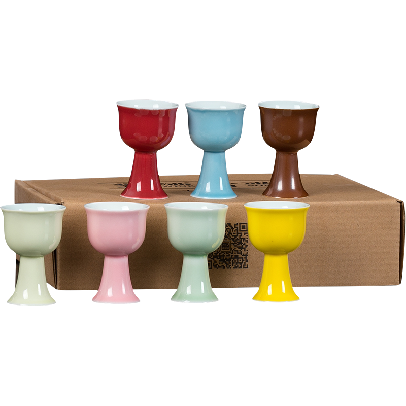 景德镇陶瓷小酒杯酒盅家用一口杯酒具套装创意复古中式七彩白酒杯