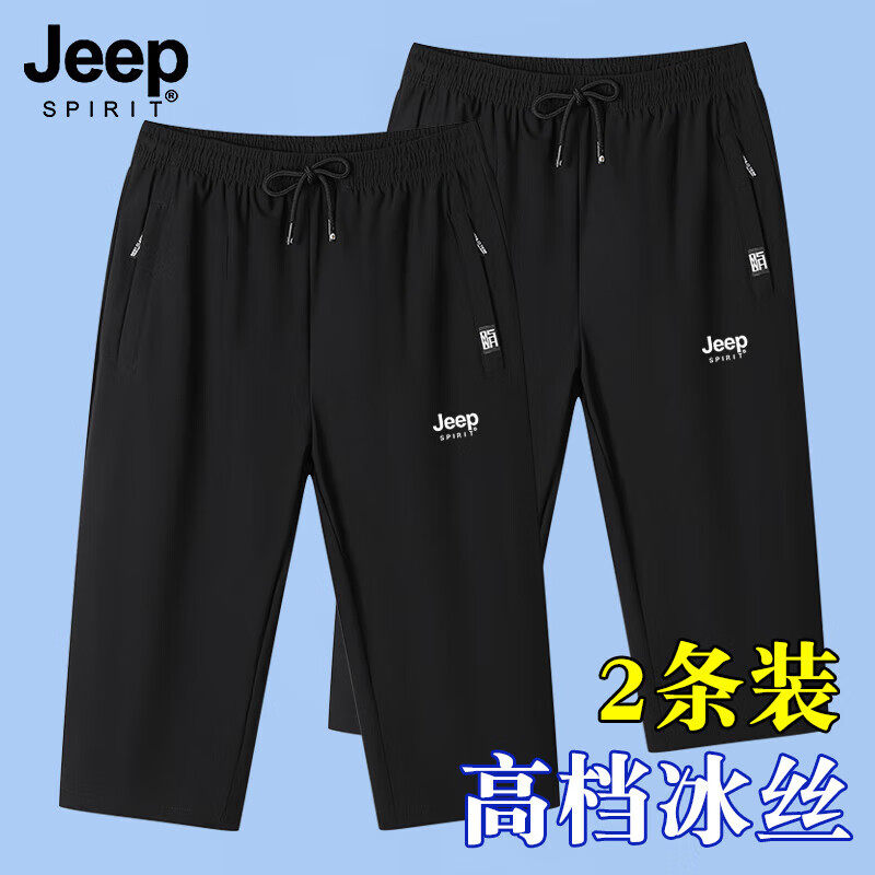 JEEP SPIRIT吉普冰丝七分裤夏男士短裤速干青年中裤薄款休闲裤男
