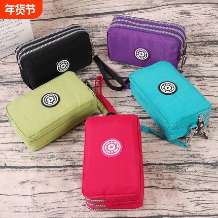 女士三层拉链手机零钱包女帆布长款钱包简约小手包布艺手拿包小包