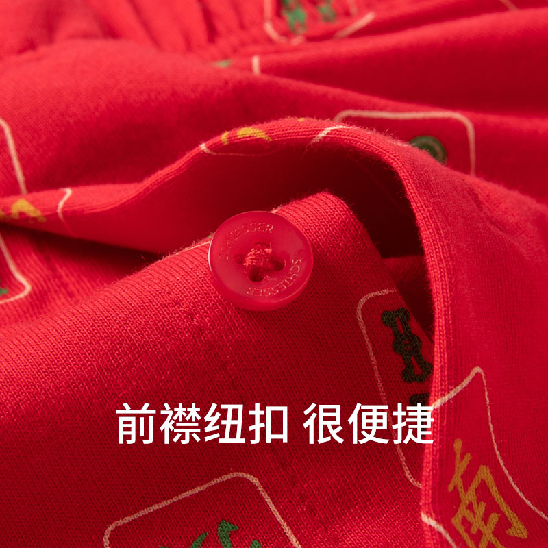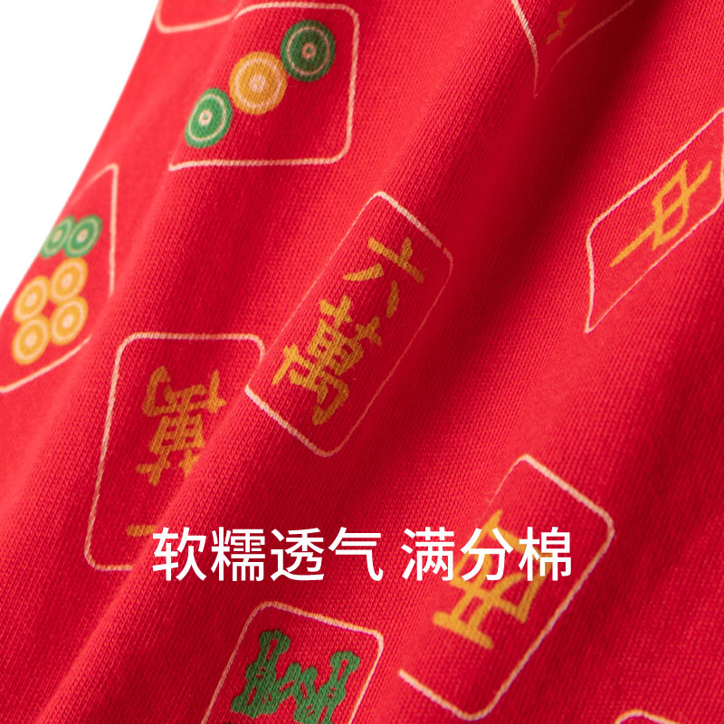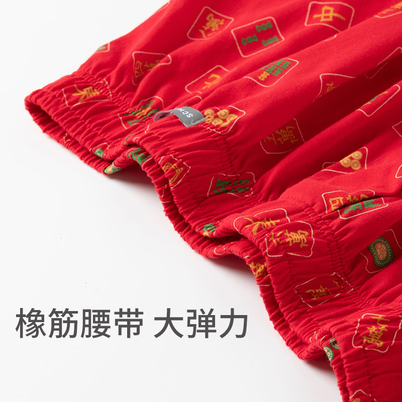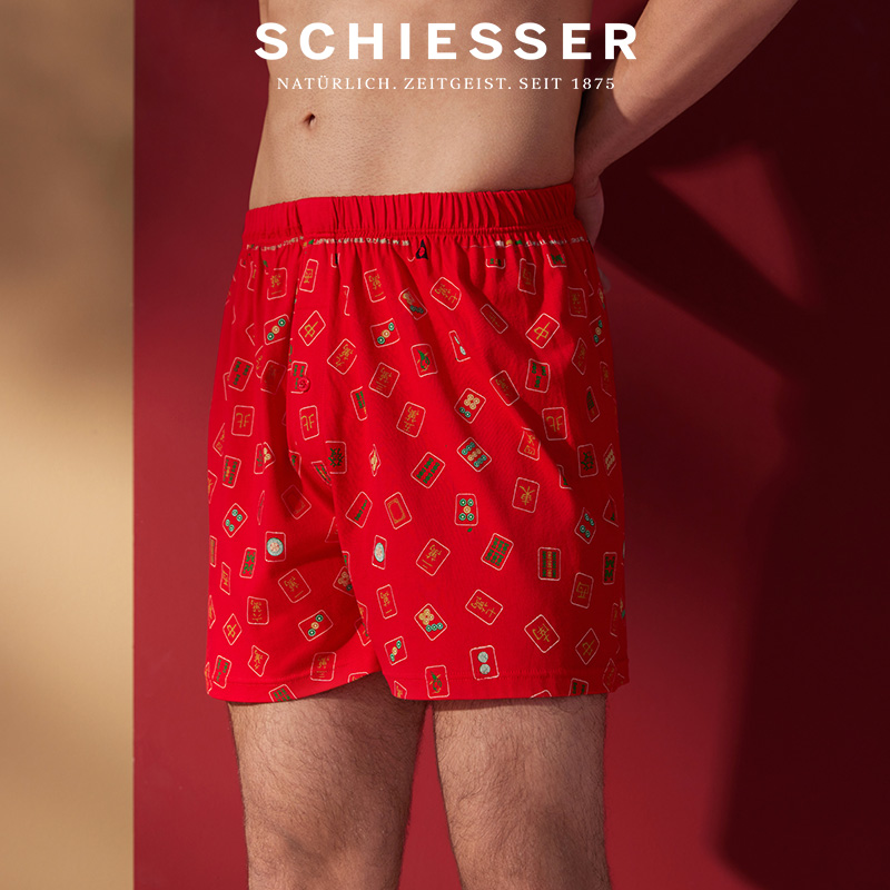 SCHIESSER舒雅奥莱男士纯棉鸿运麻将印花中国红阿罗裤家居短裤