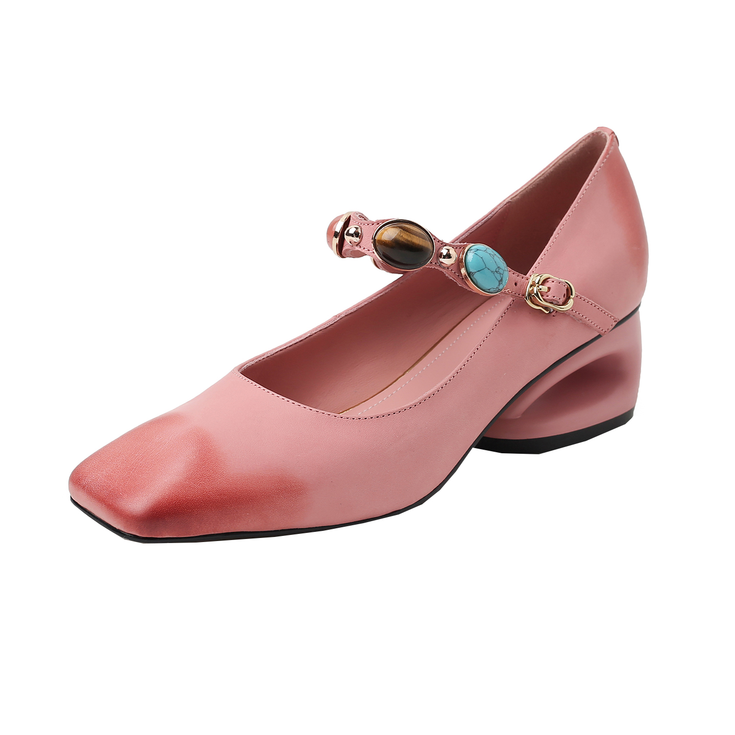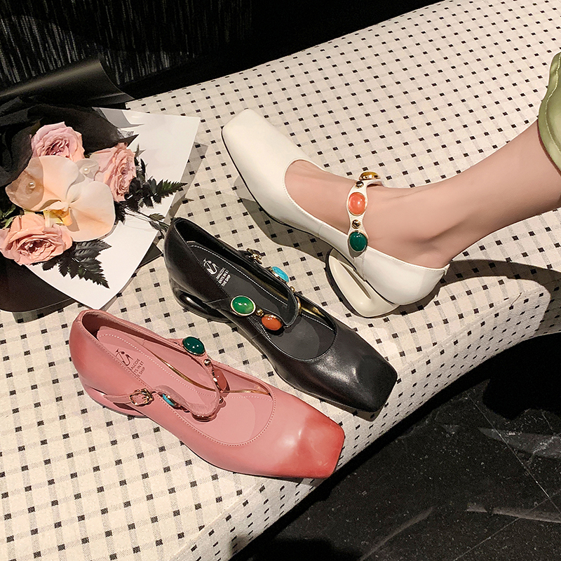 5cm真皮法式复古绝美单鞋女不累脚粗跟配裙气质时尚宝石玛丽珍鞋