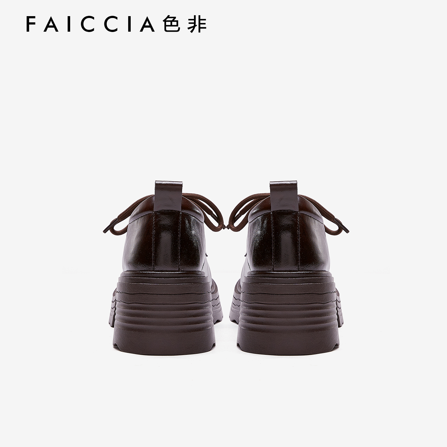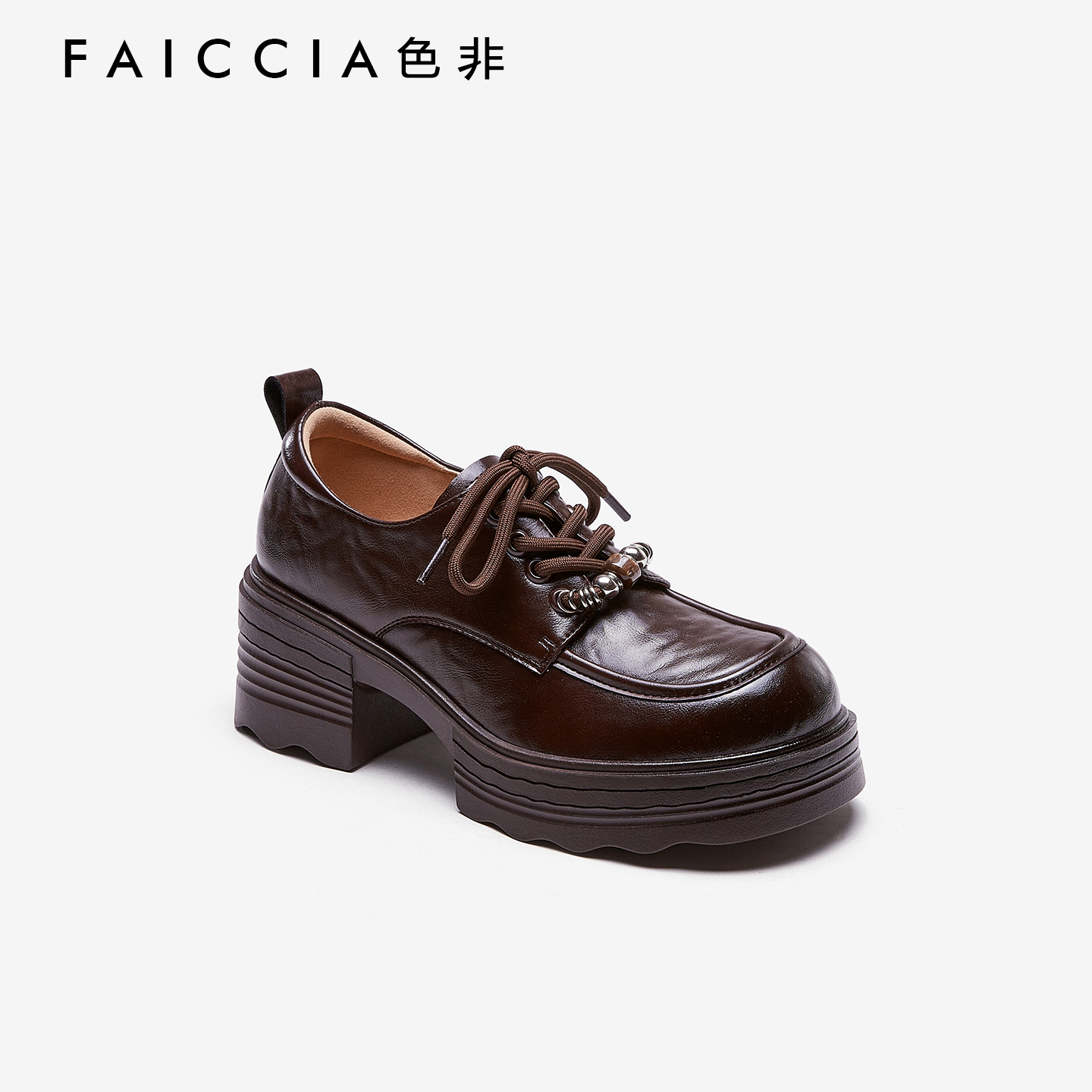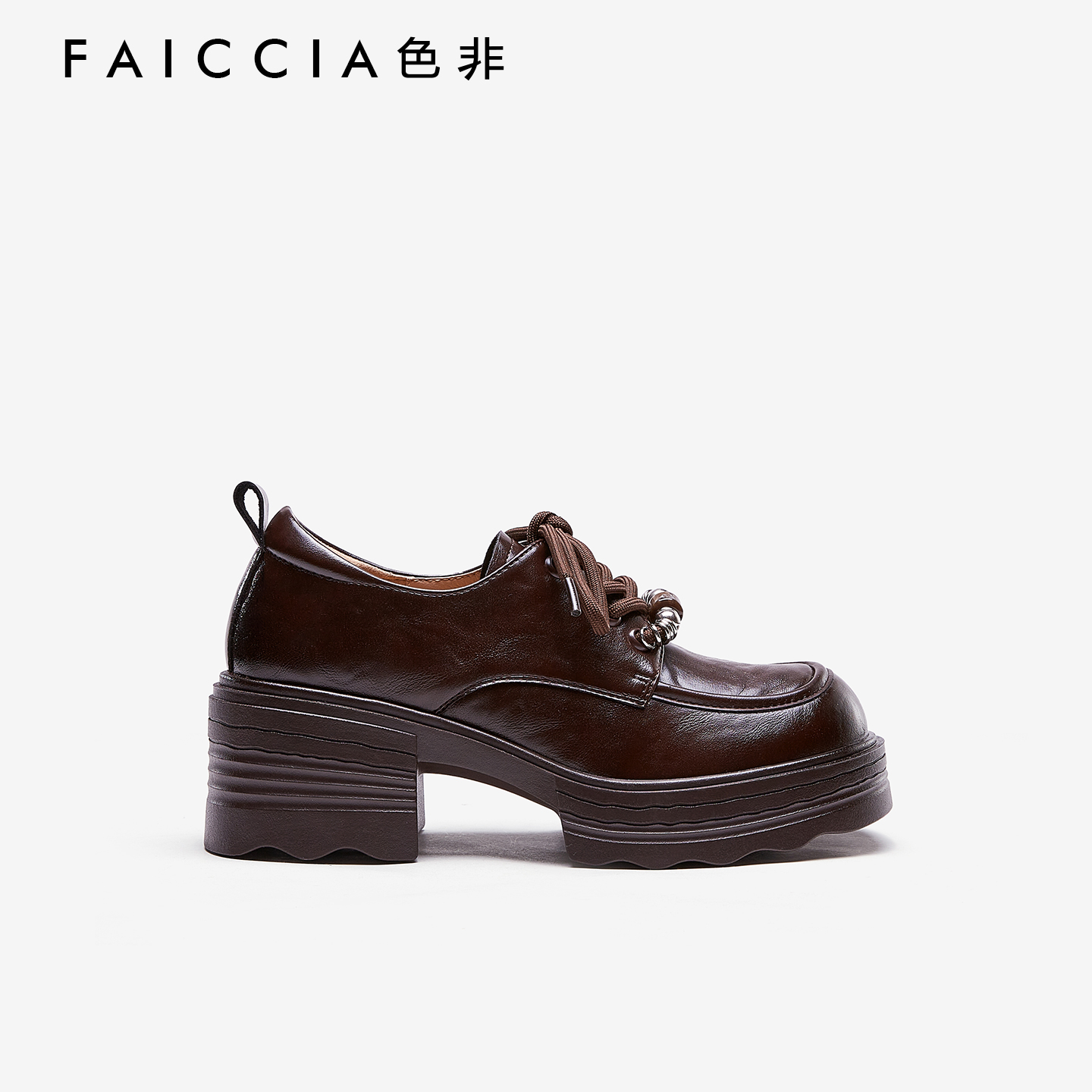 色非厚底增高乐福鞋女2025年秋新款复古棕色绑带学院风粗跟小皮鞋