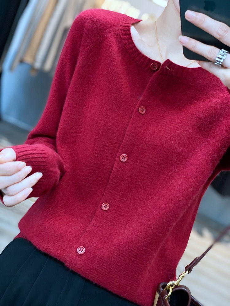 2024早秋新款长袖女士针织开衫纯色简约薄款外搭上衣气质减龄外