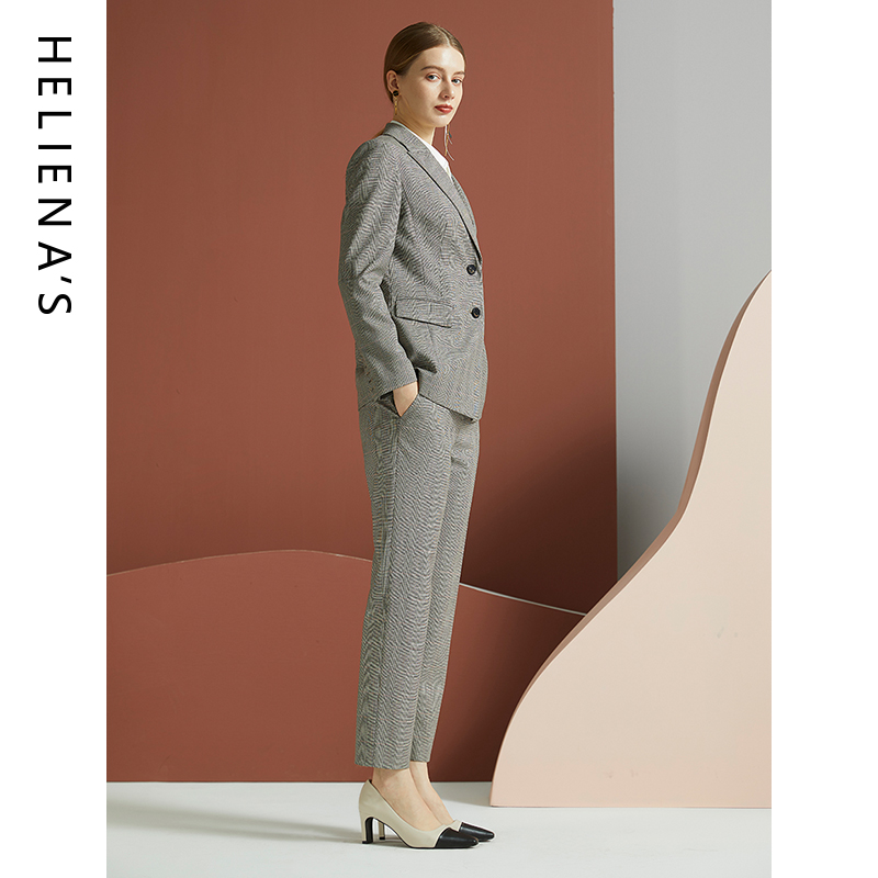 海兰丝灰色西服 法式西装西服外套女职业通勤秋款设计感 套装