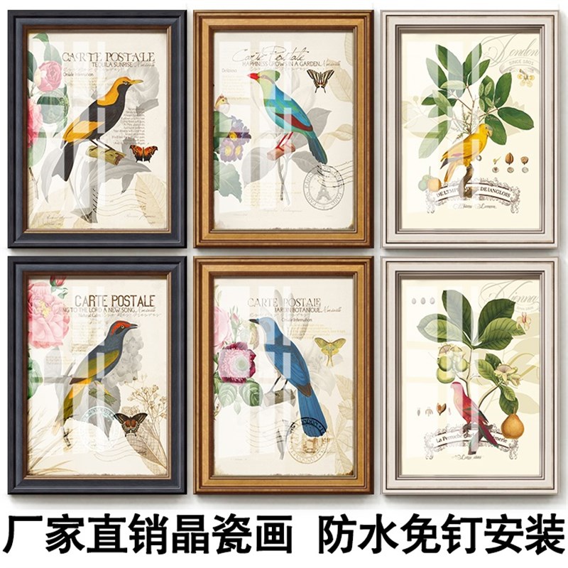 欧美式复古乡村墙壁浴室田园防水餐厅卫生间卧室走廊花鸟装饰挂画