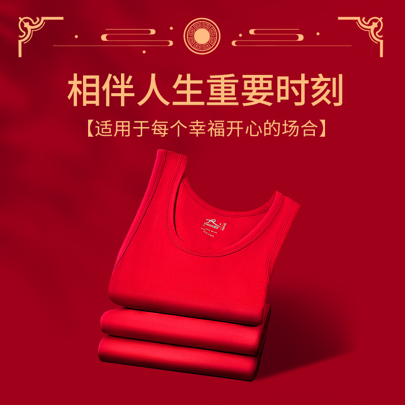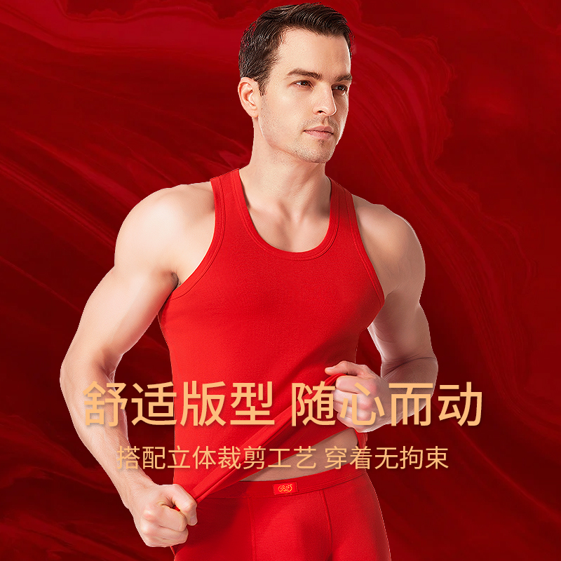 浪莎马年大红色男士背心纯棉本命年衣服秋冬结婚内衣内裤套装薄款