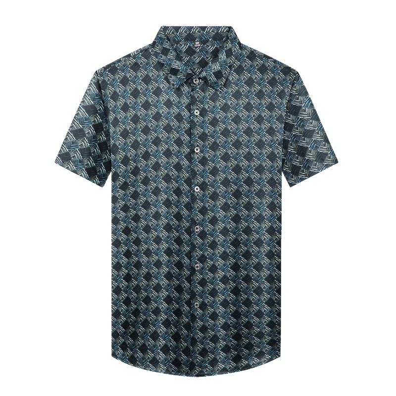 【真丝】93%桑蚕丝夏季短袖高档衬衫真丝中老年丝绸缎大方格衬衣