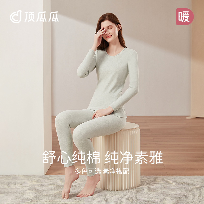 顶瓜瓜长袖女士简约纯棉保暖内衣