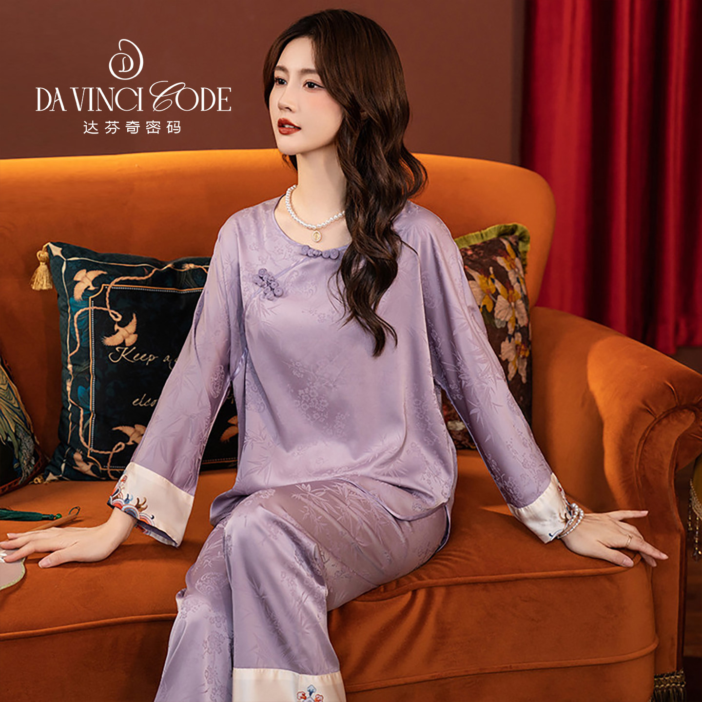达芬奇密码2026春夏新款新中式国风睡衣女仿真丝绸长袖家居服套装