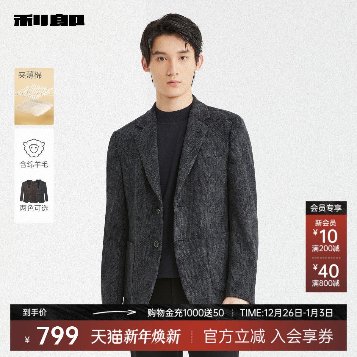 【夹薄棉】利郎官方 毛呢大衣男翻领2025冬绵羊毛保暖中长款外套
