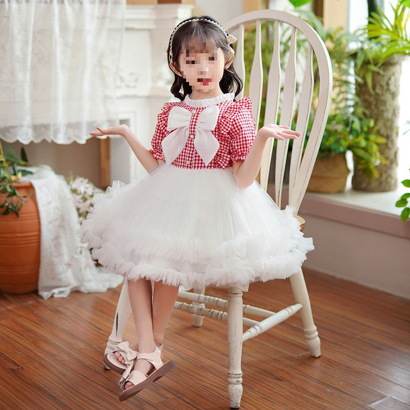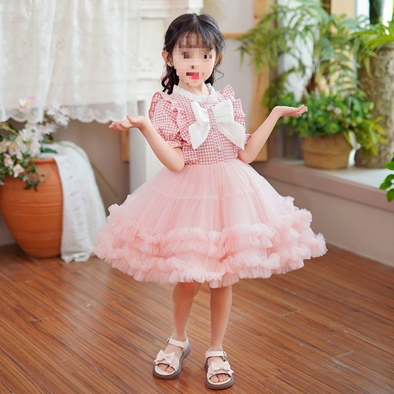 儿童公主裙夏季新款女孩粉色蓬蓬纱中小童连衣裙甜美可爱宝宝