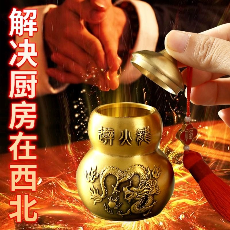 避火龙瓶子厨房在西北角壁火龙黄碎石水晶土陶瓶铜罐纯铜葫芦摆件
