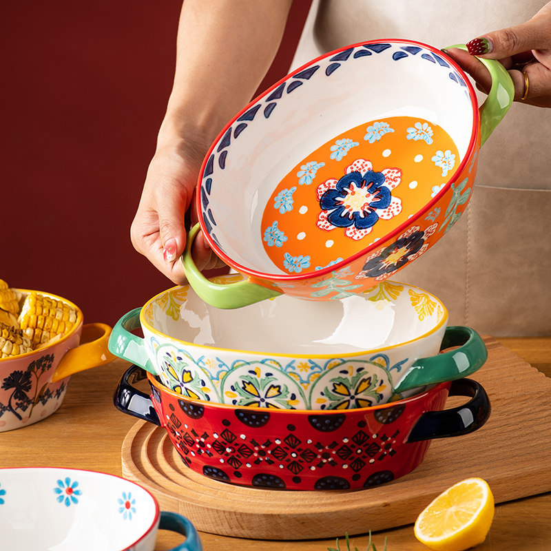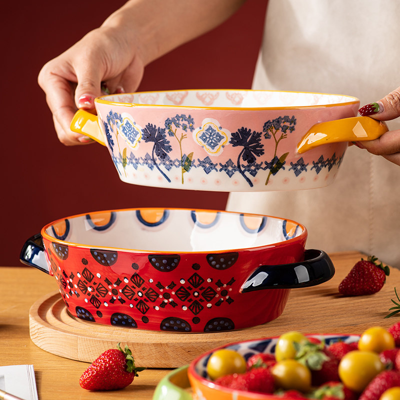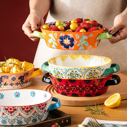 繁花双耳盘餐盘陶瓷创意烤盘餐具