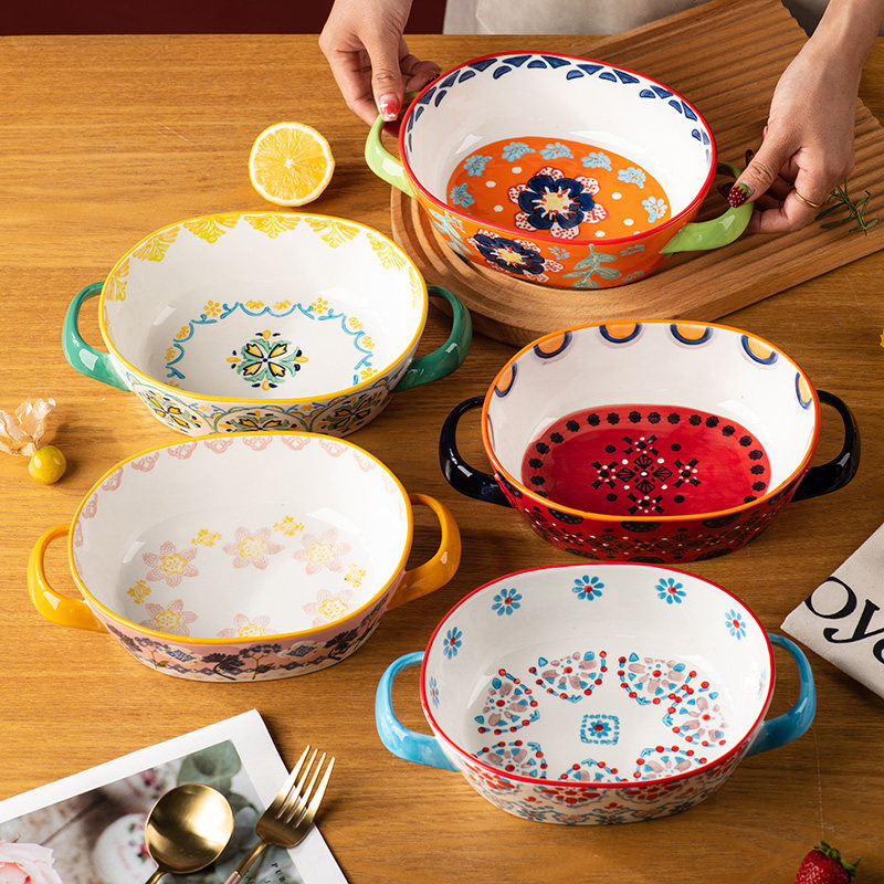 繁花双耳碗陶瓷精致釉下彩餐具盘子餐盘汤盘饭盘菜盘果盘深盘家用