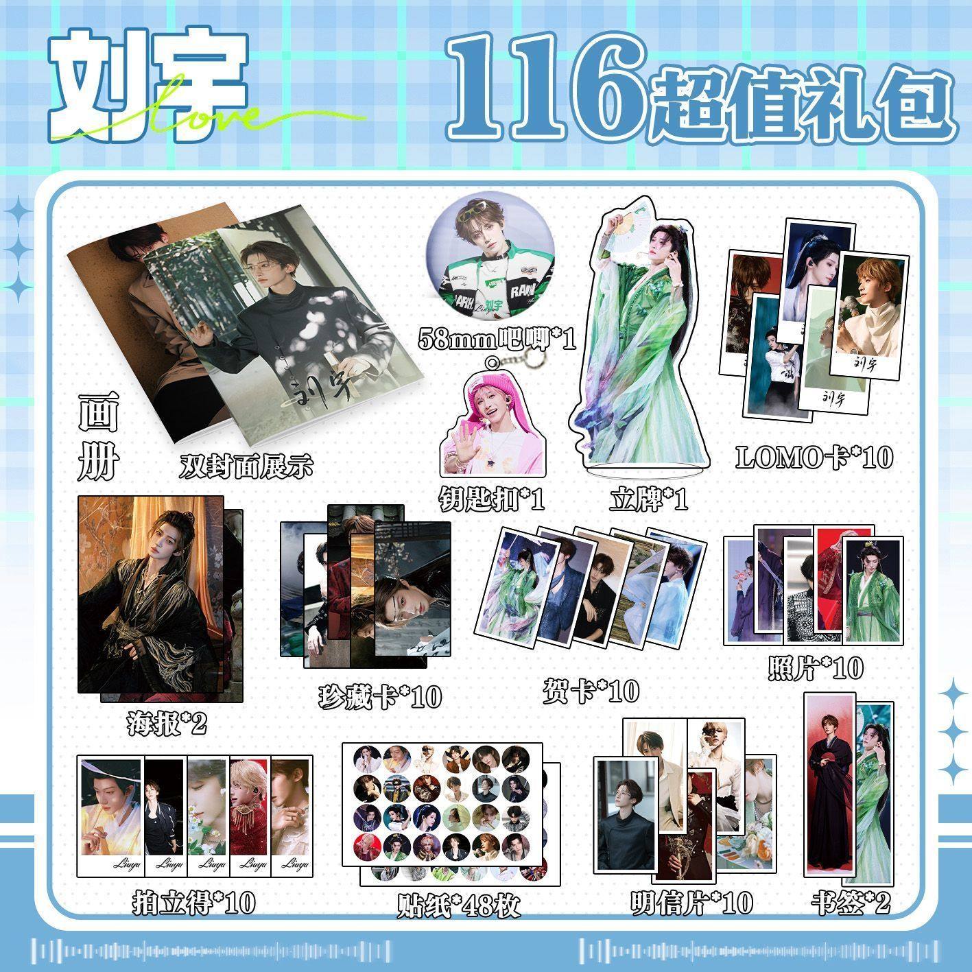 刘宇113件套周边画册海报书签拍立得贴纸明信片LOMO卡片照片