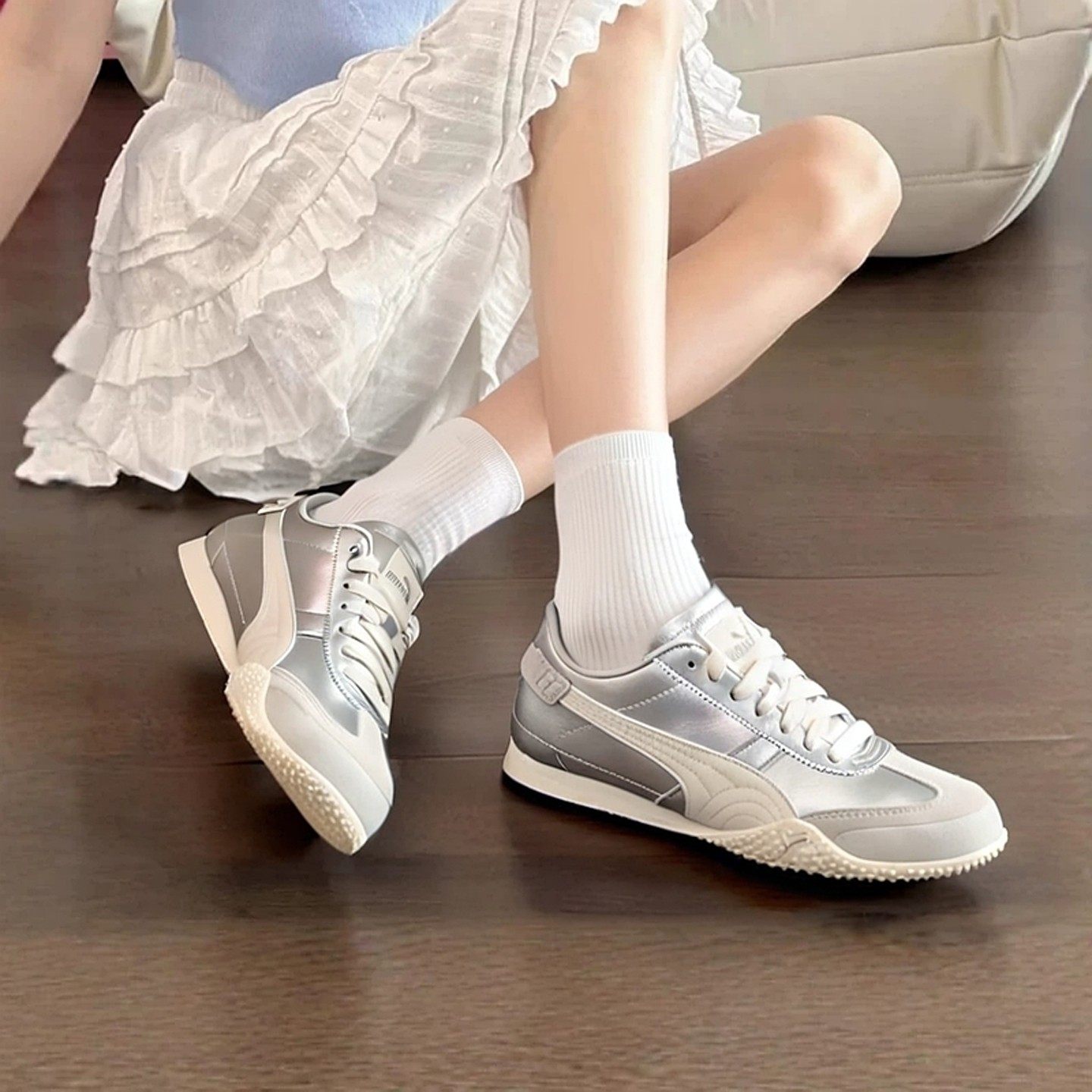 PUMA彪马德训鞋女鞋2026春季新款银色休闲运动T头鞋薄底鞋405256