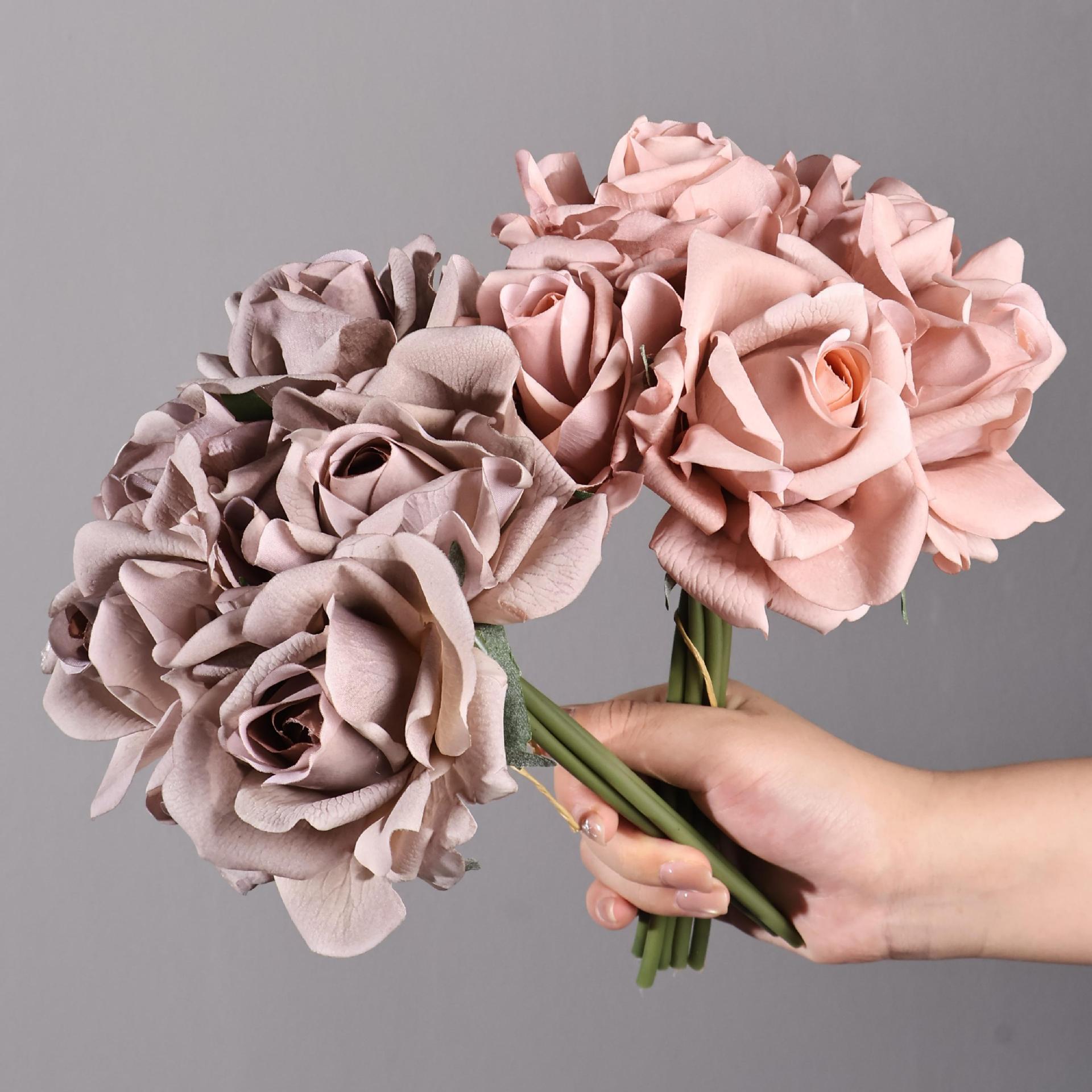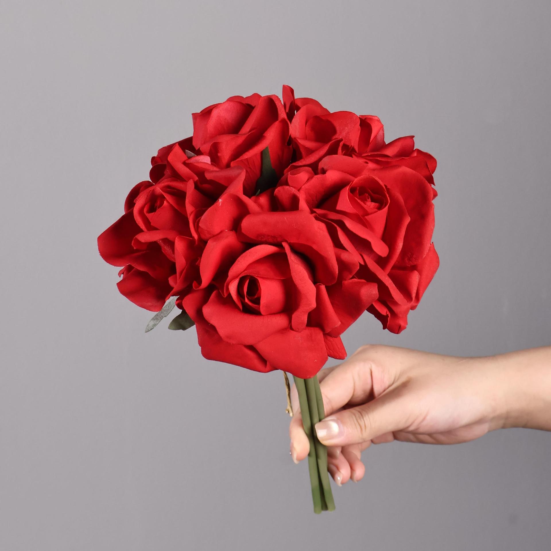 仿真玫瑰花手捧花仿真花手腕花逼真手感保湿插花花材摆件结婚假花