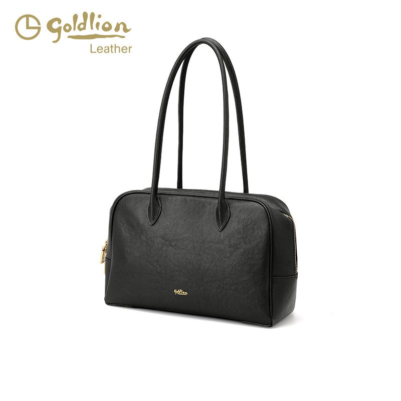金利来时尚女包手提包新款吐司包大容量牛皮黑色单肩波士顿腋下包