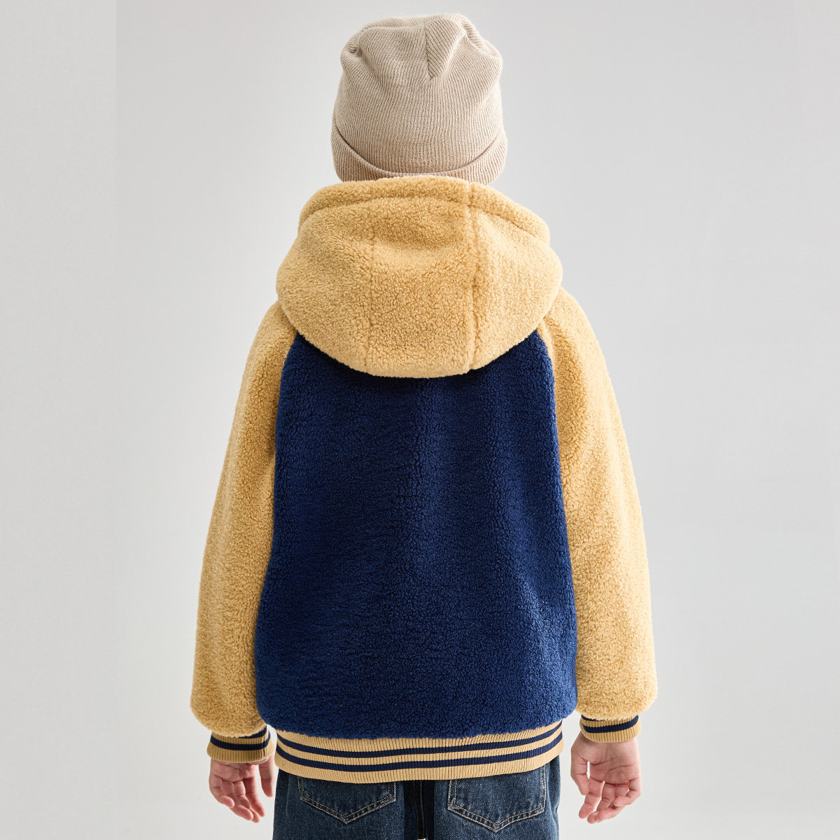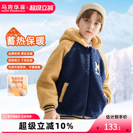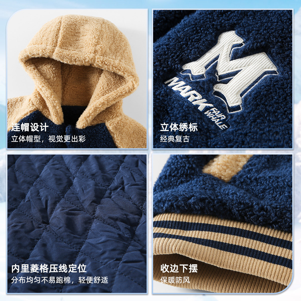 【新品优选】马克华菲儿童羊羔绒连帽外套厚棉袄男童棉服仿羊羔毛