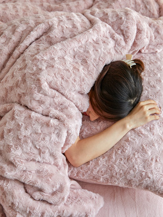 玫瑰花海兔兔绒加厚保暖四件套