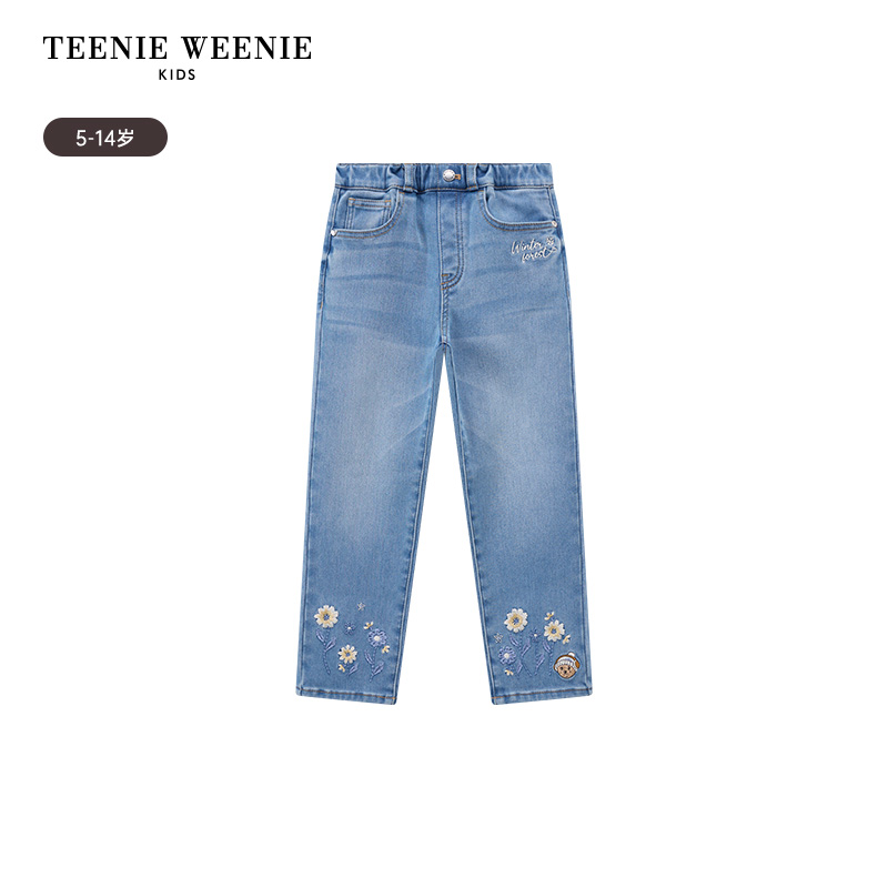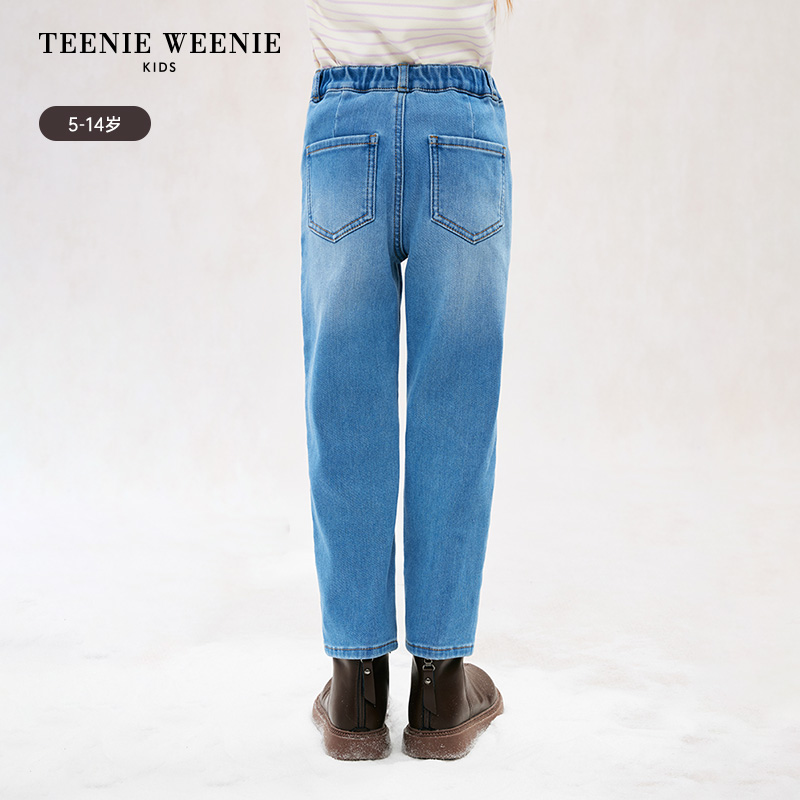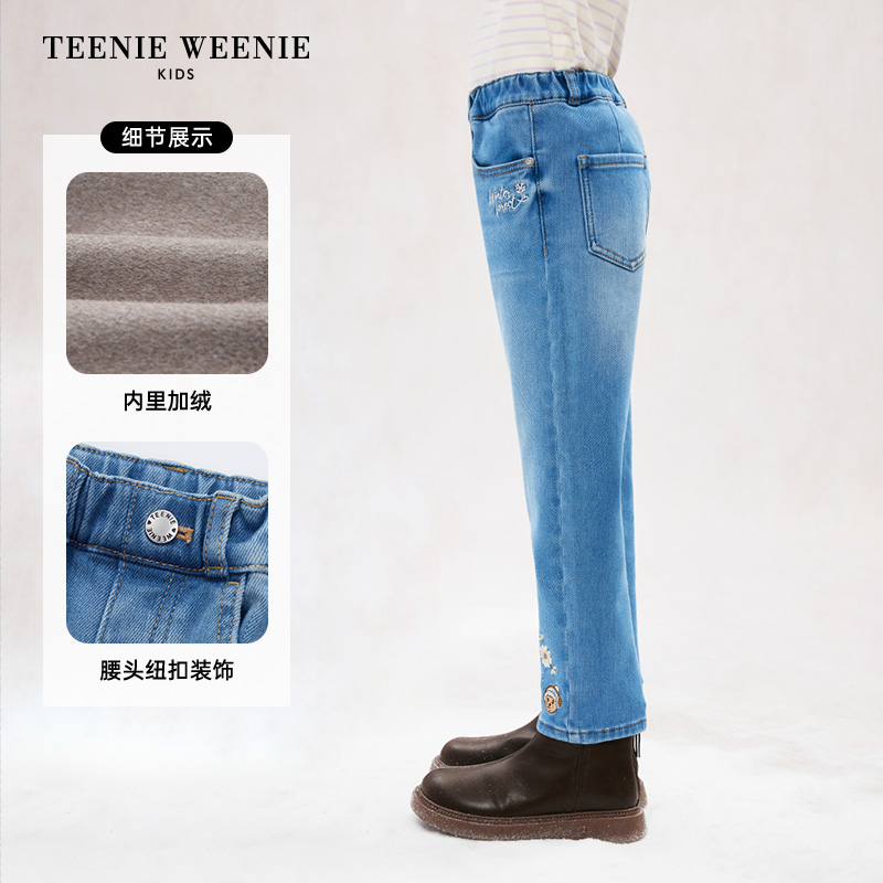 TeenieWeenie Kids小熊童装秋冬季款女童时尚风加绒刺绣牛仔长裤