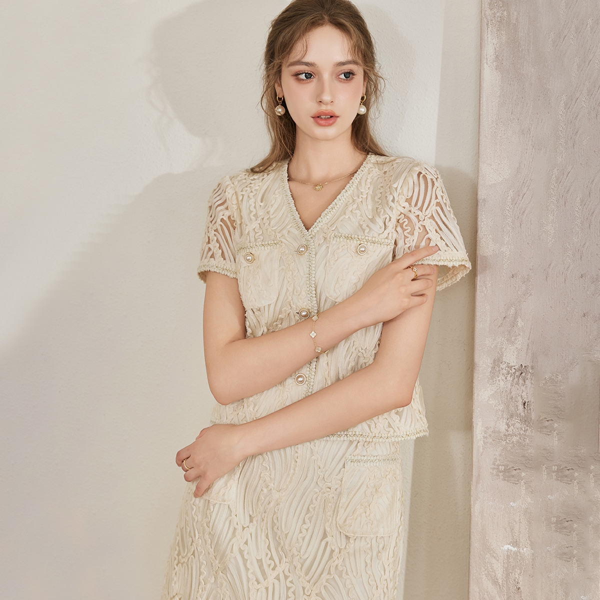 罗衣高级立体盘带套装女2025夏季新款法式上衣半身裙两件套10836