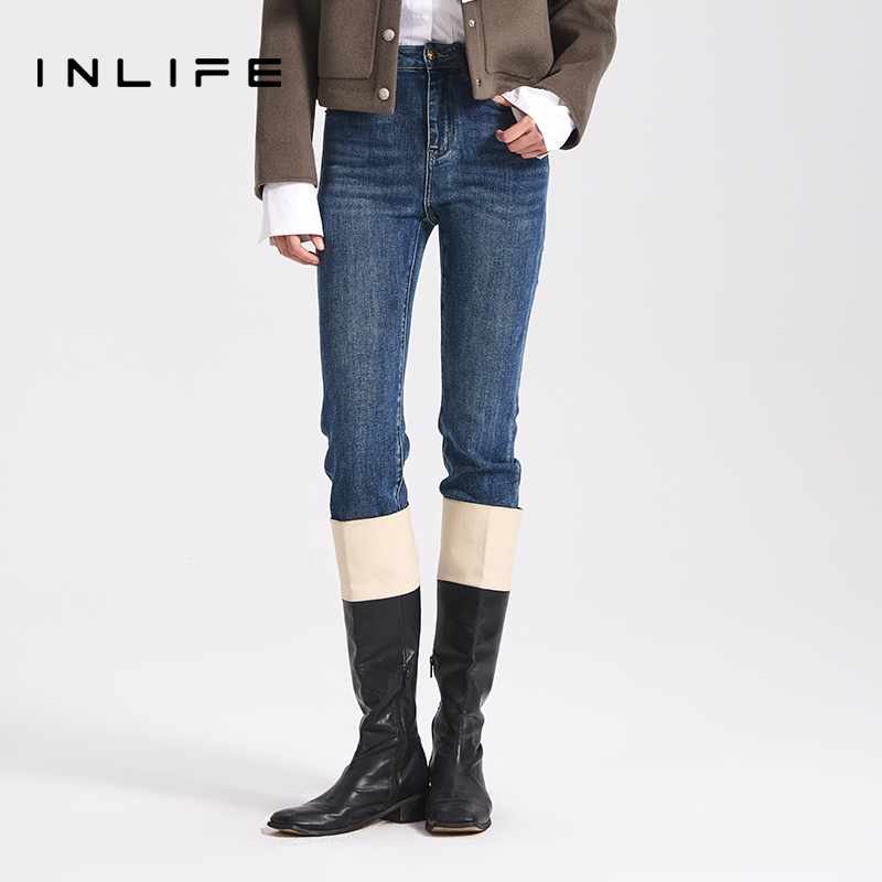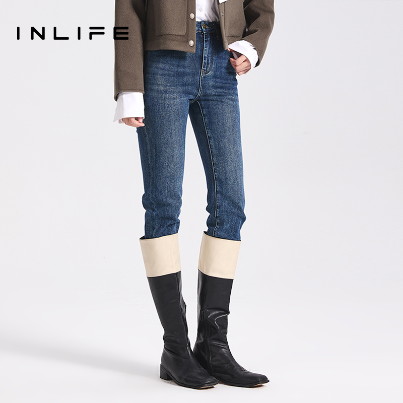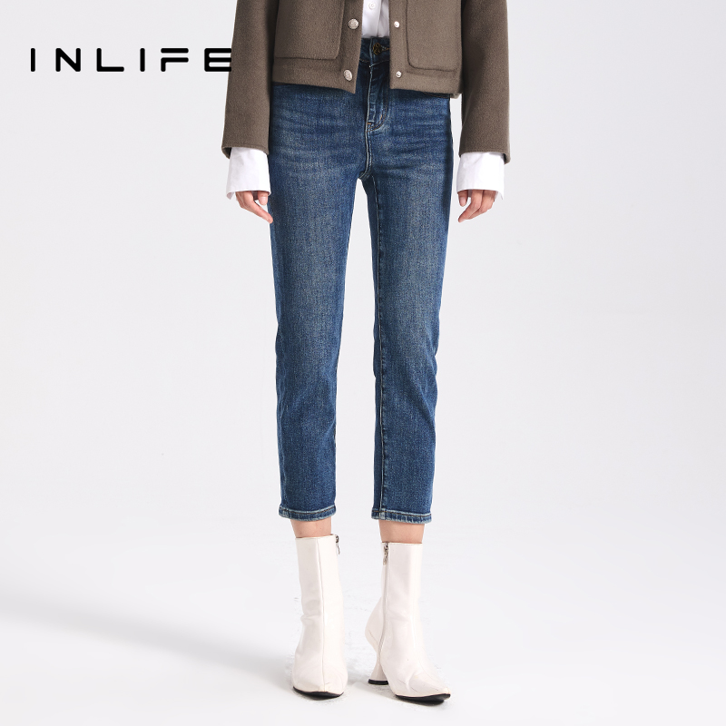 伊纳芙美式直筒牛仔裤女秋季新款时尚修身显瘦九分裤百搭小脚裤