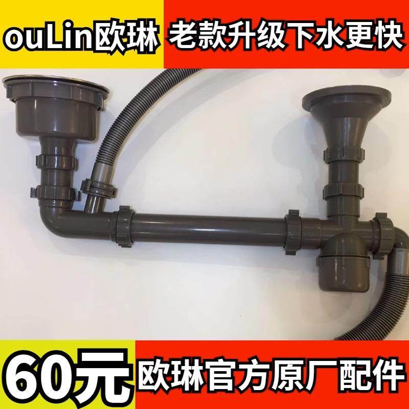 欧琳水槽双槽下水配件 原厂带提拉钢丝台控水槽下水管 排水管配件