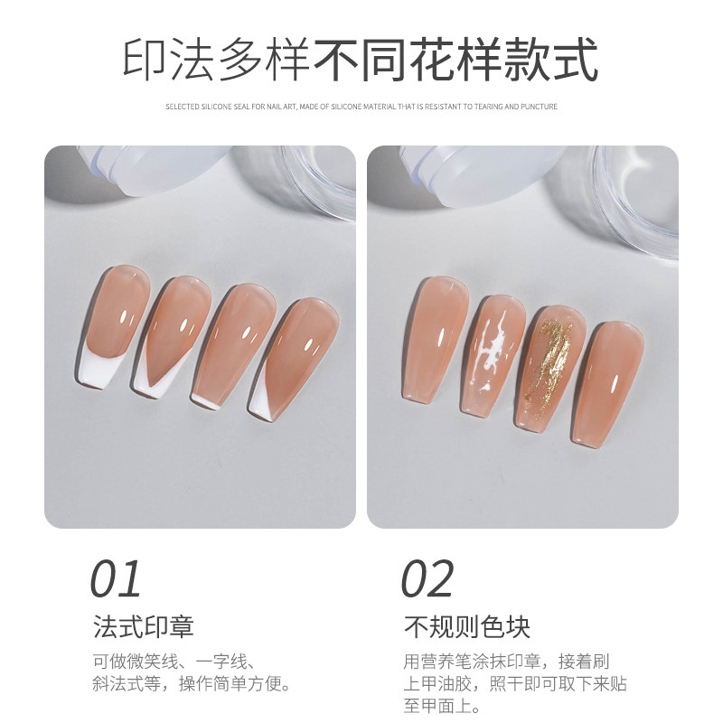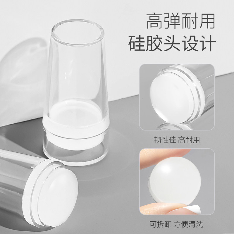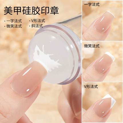 美甲硅胶印章新款转印头透明法式美甲印花工具带刮刀光疗指甲套装